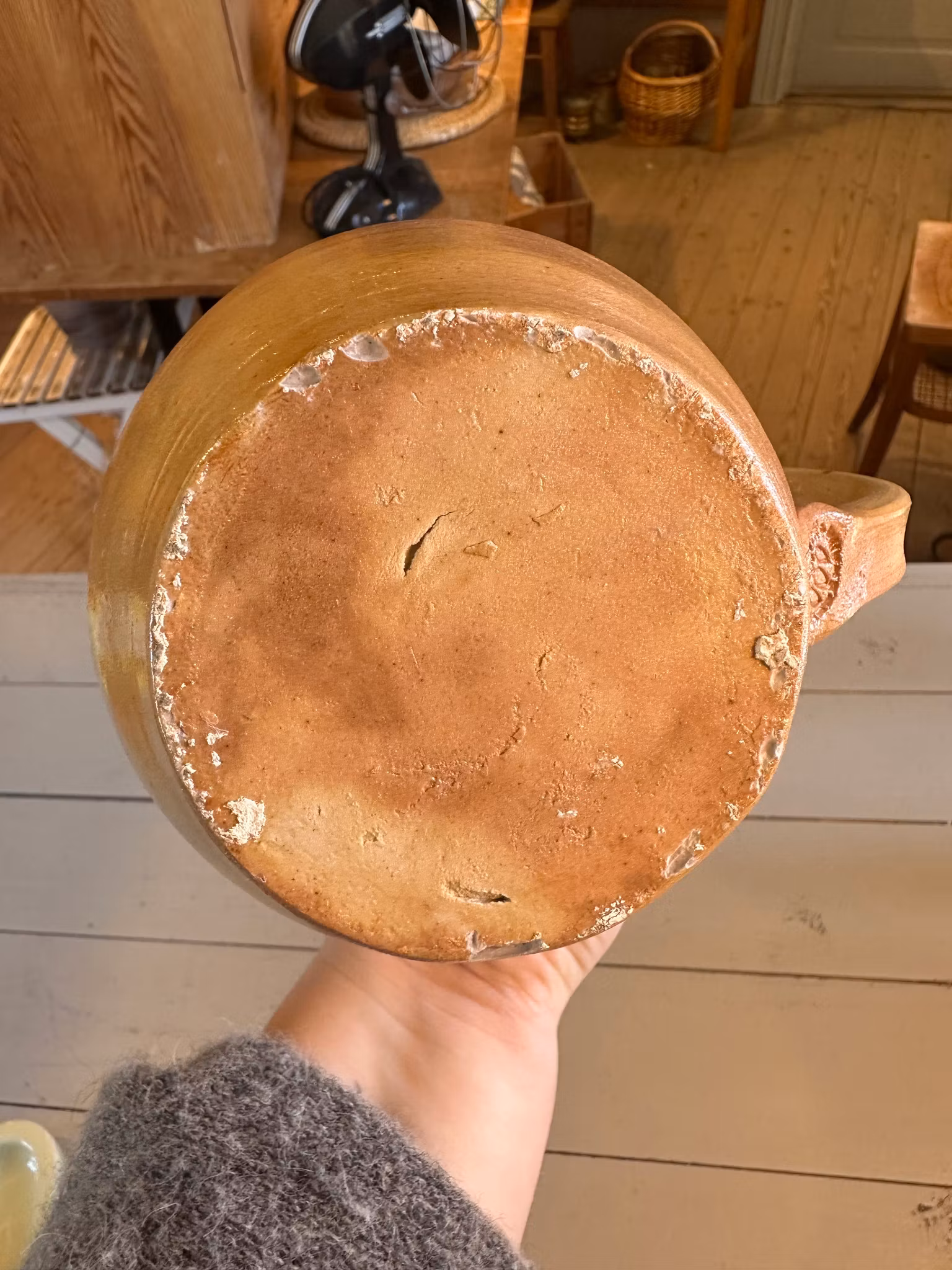 I gott använt och åldrat skick. Spår av användning finns över hela. Se bilder för skick. Ej testad för täthet. Spår av användning finns inuti. Lite små avslag undertill, se bild.