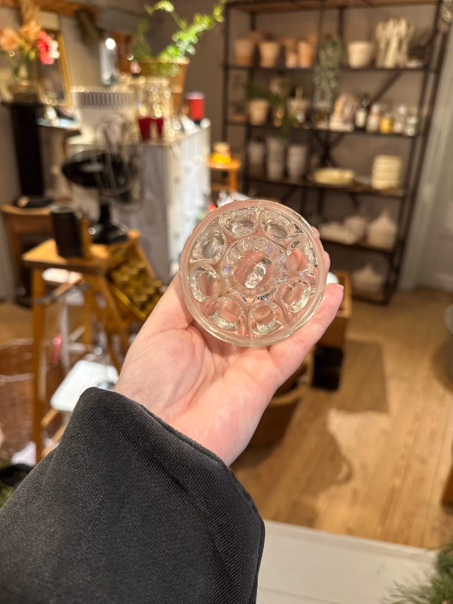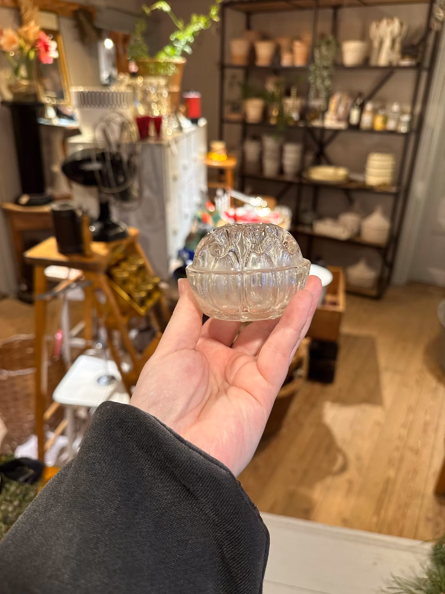 Fransk fakir i glas. I gott använt och åldrat skick. Spår av användning/ålder finns över hela. Se bilder för skick. Ej rengjord inuti så lite kalkig och