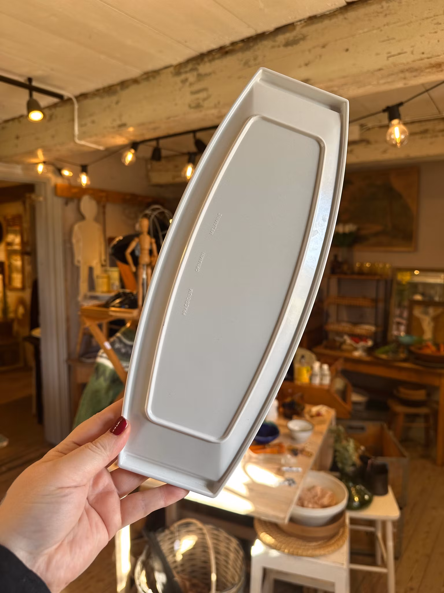 Fin liten bricka i plastmaterial. Motiv på ovansidan. Ålder okänd.