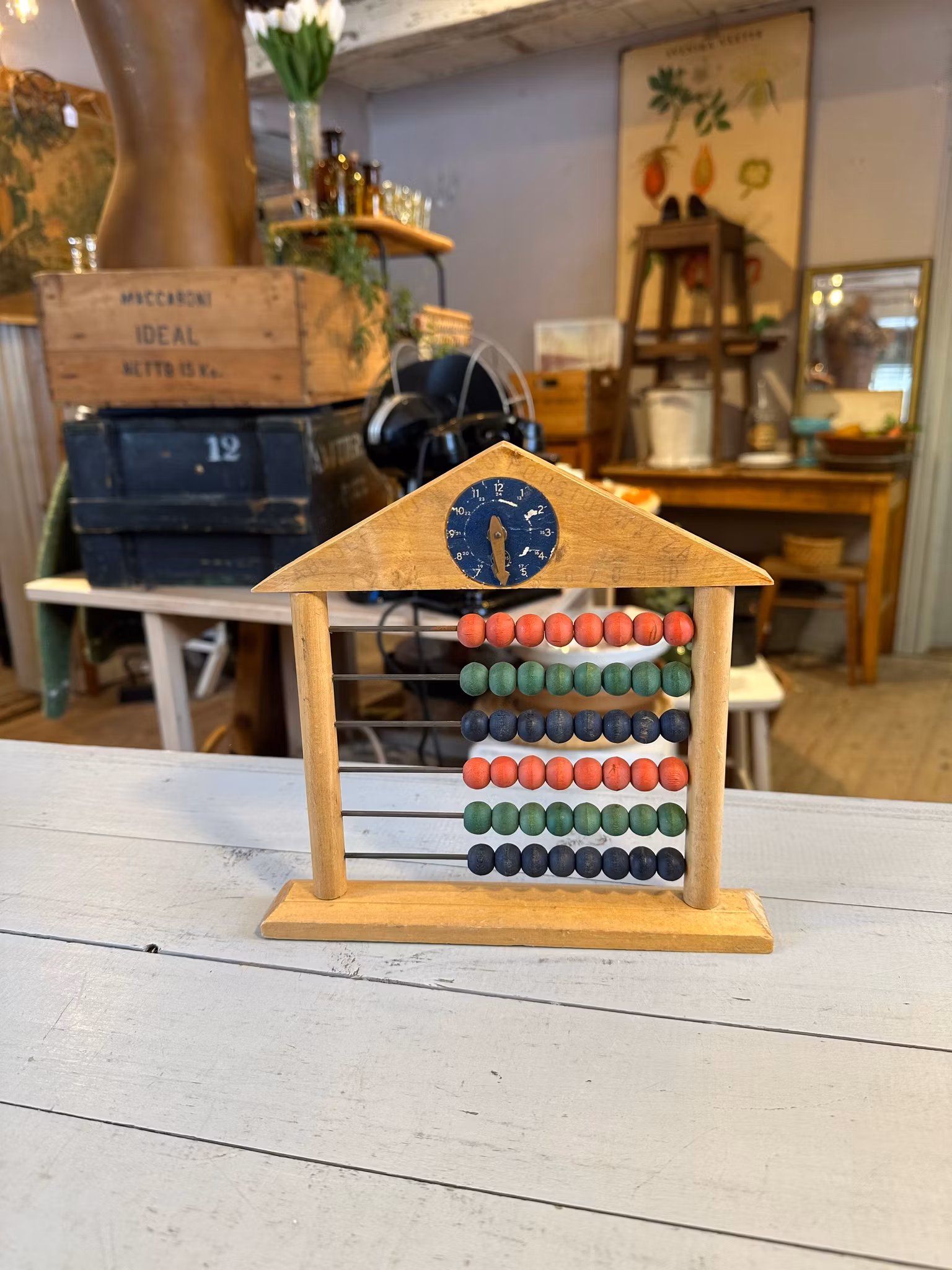 I gott använt och åldrat skick. Spår av användning och ålder över hela. Se bilder för skick. Visarna på den lilla klockan stannar inte i läge när man vrider de utan de faller ner på klockan 18. Står lite ojämnt och vippigt då träet vridit sig lite med åren.