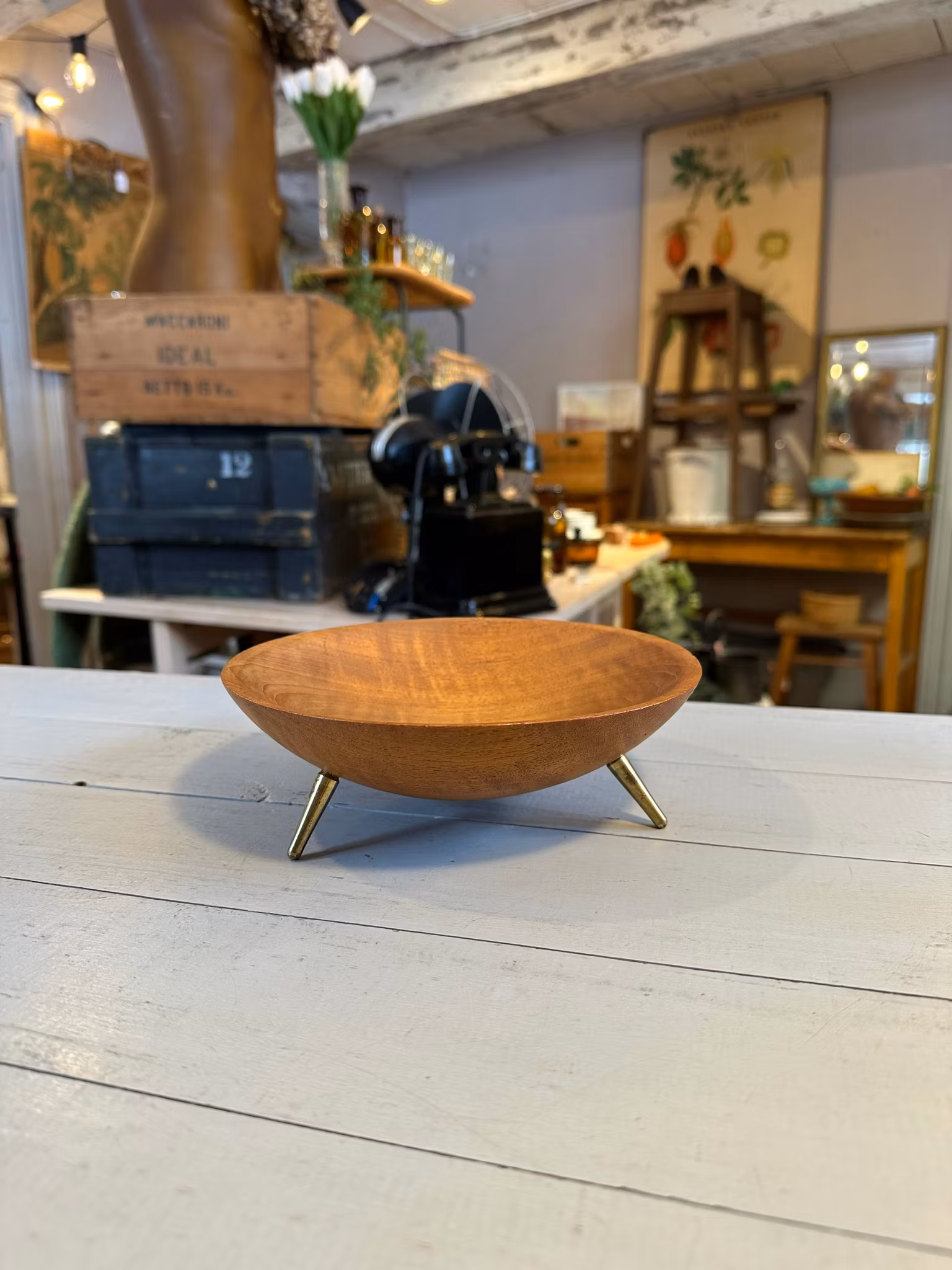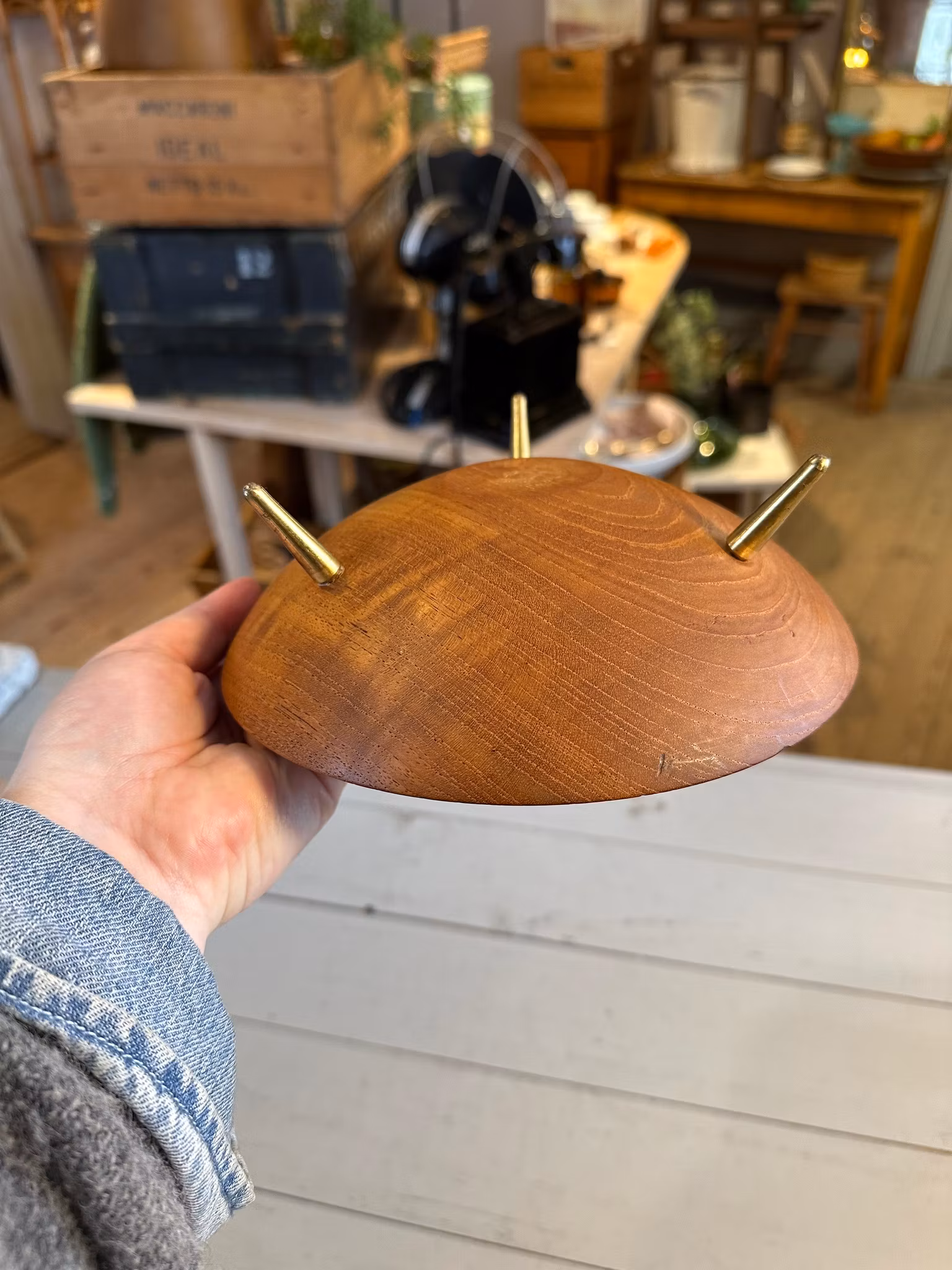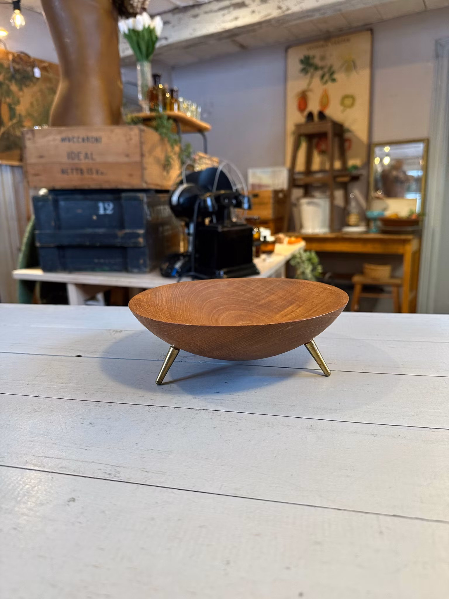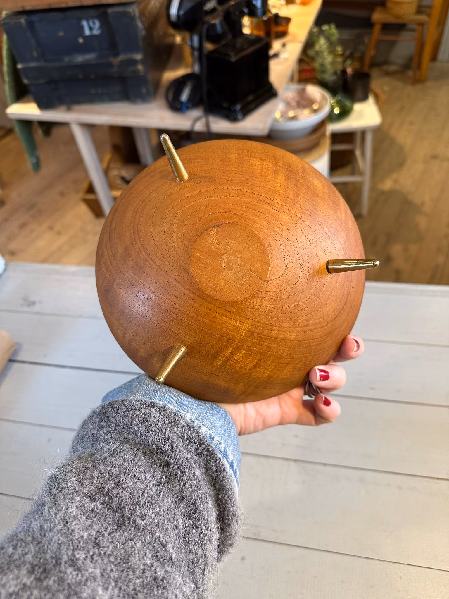 Ljuvlig liten teakskål på tre små ben gjorda i mässing. Riktigt snygg stilren design.