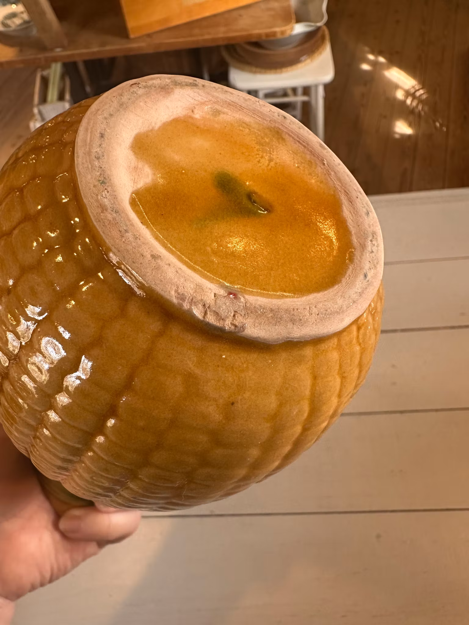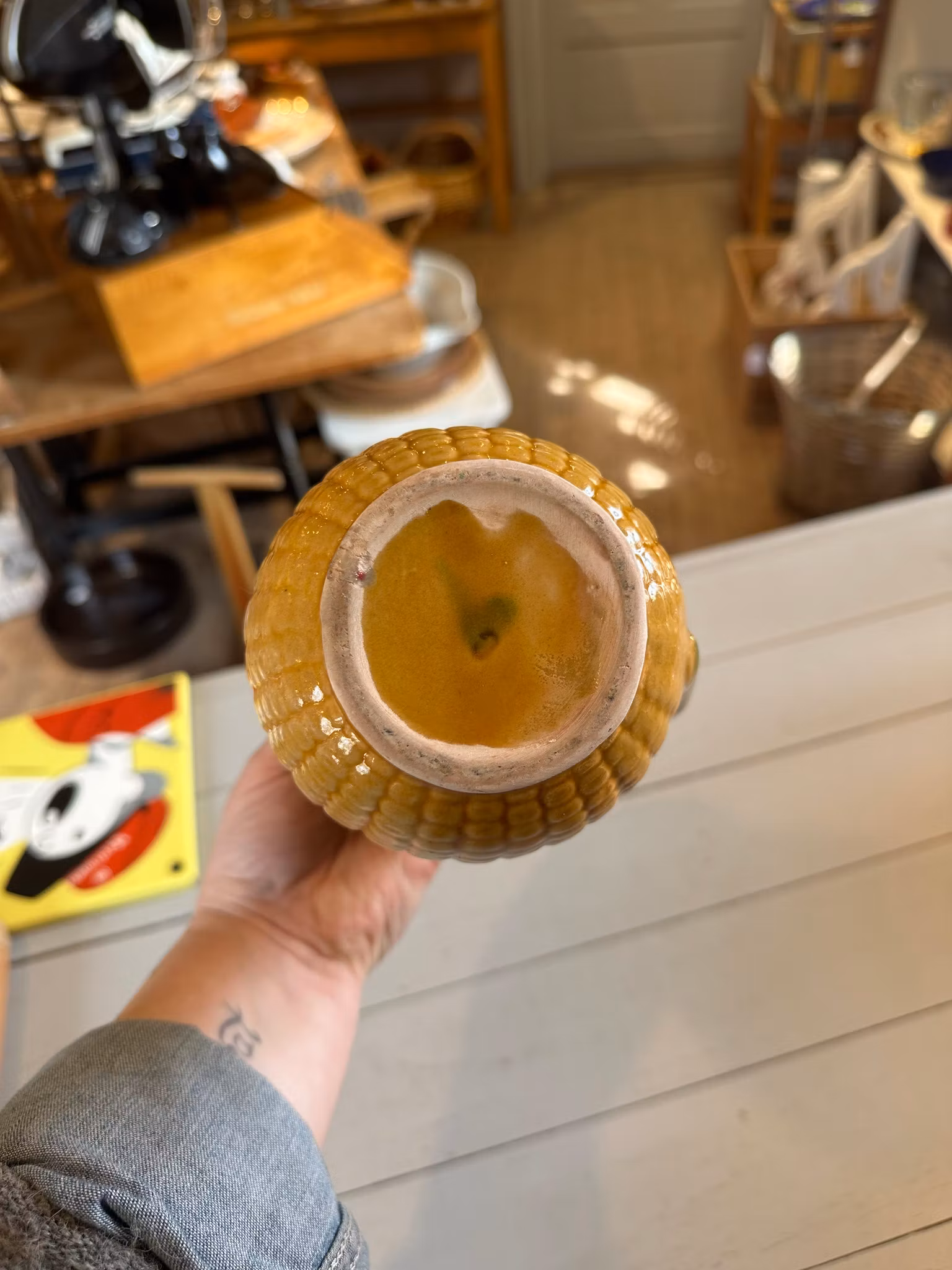 Kanna i keramik med majs-look.