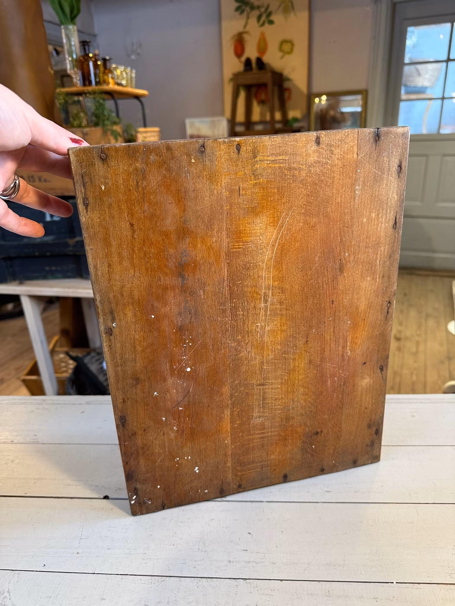 I gott använt och åldrat skick. Spår av användning och ålder över hela. Se bilder för skick. Fläckar finns över hela. Träet har rört sig lite med ålder och användning så den står inte helt jämnt.