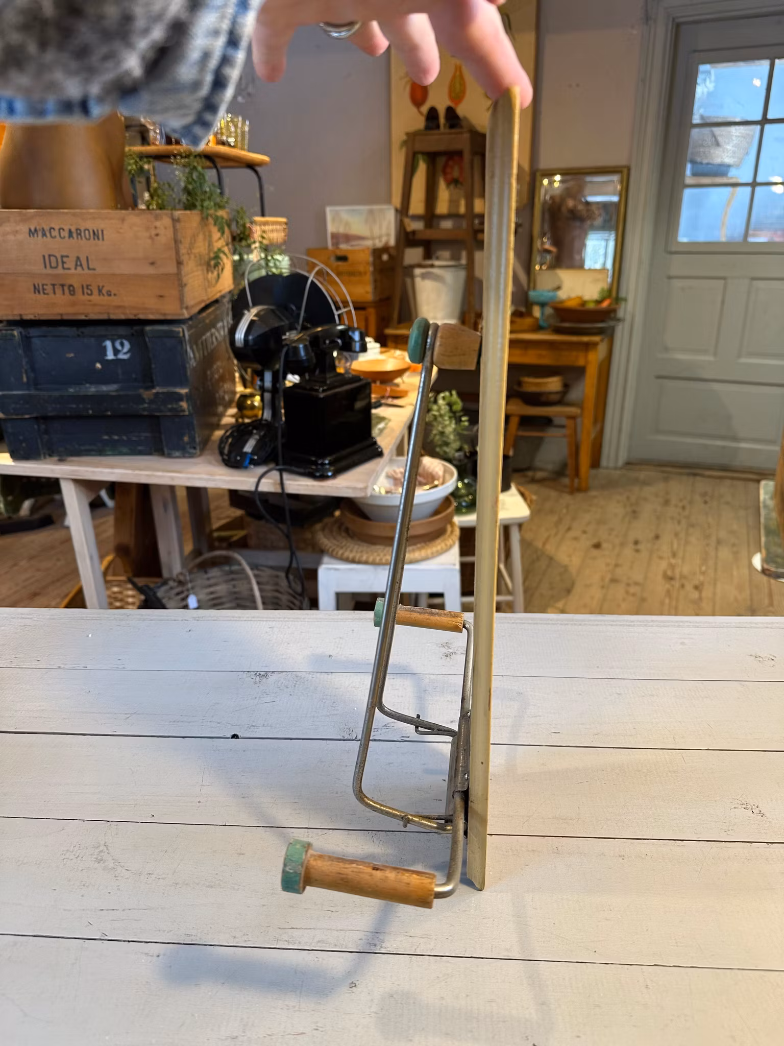I gott använt och åldrat skick. Spår av användning och ålder finns över hela. Se bilder för skick. Slitage av användning och ålder finns över hela. Lite flisig runt ena hålet för upphängning.