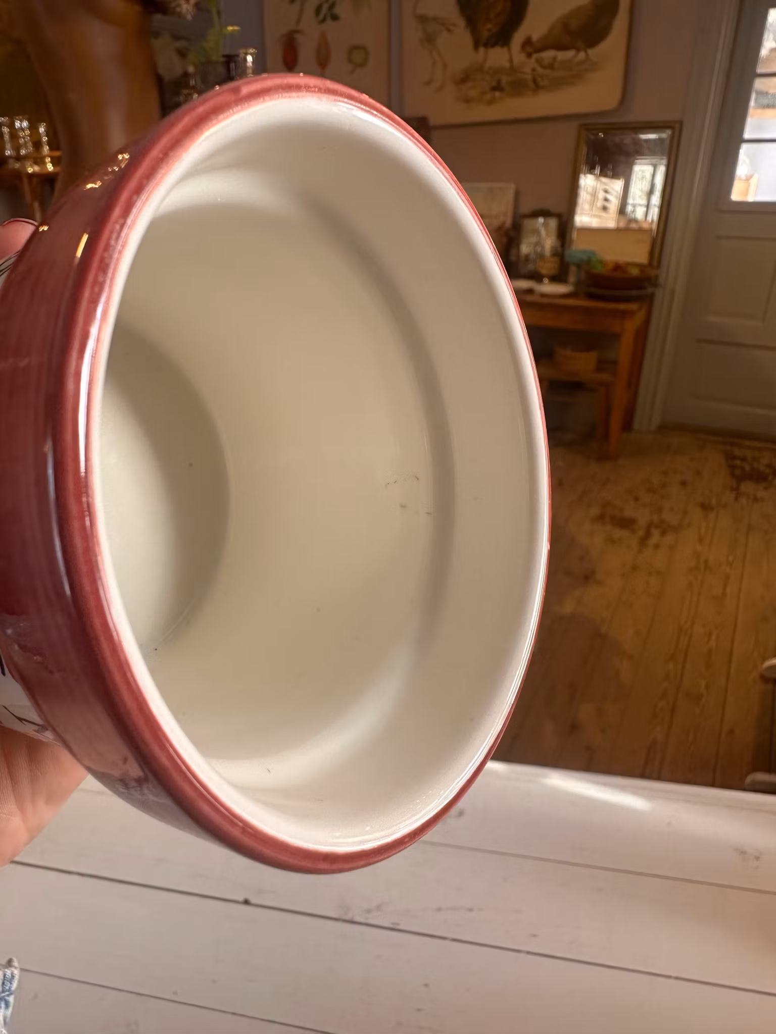 I gott använt och åldrat skick. Spår av användning finns över hela. Se bilder för skick. Små fläckar inuti.