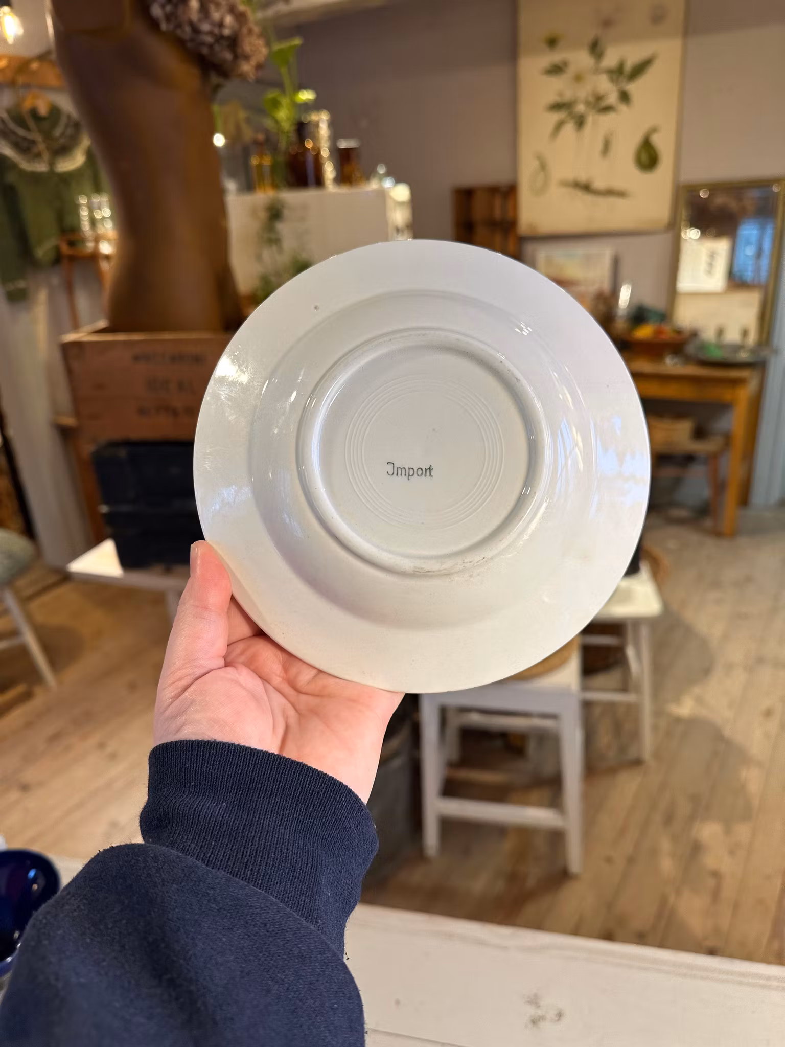 Charmig gammal djup tallrik i barnstorlek med text.