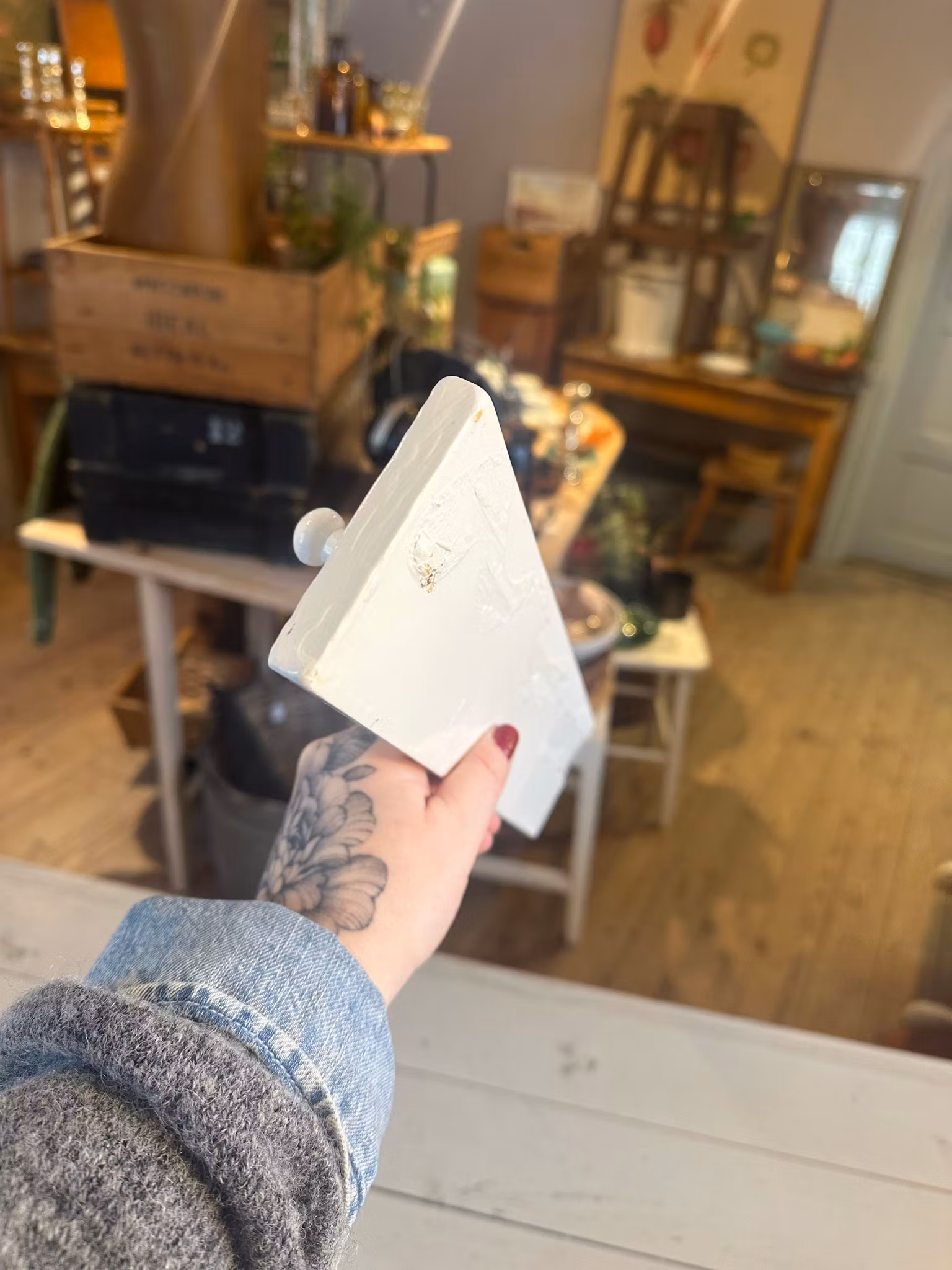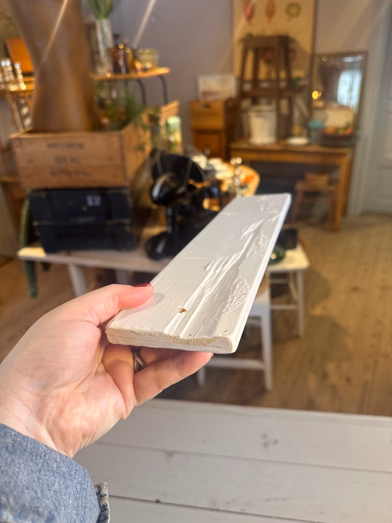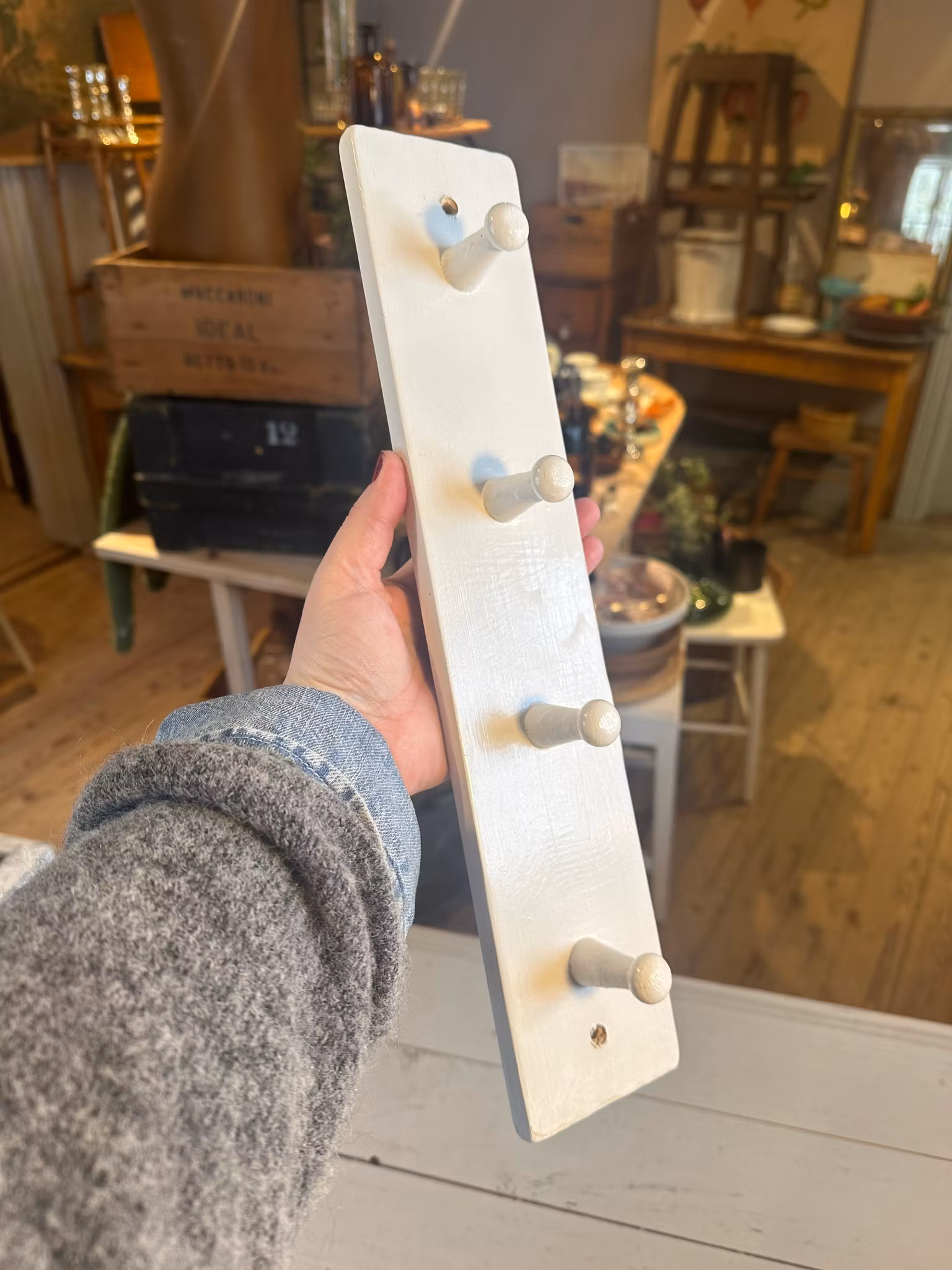Fin liten kroklist med fyra knoppar/krokar. Vitmålad.