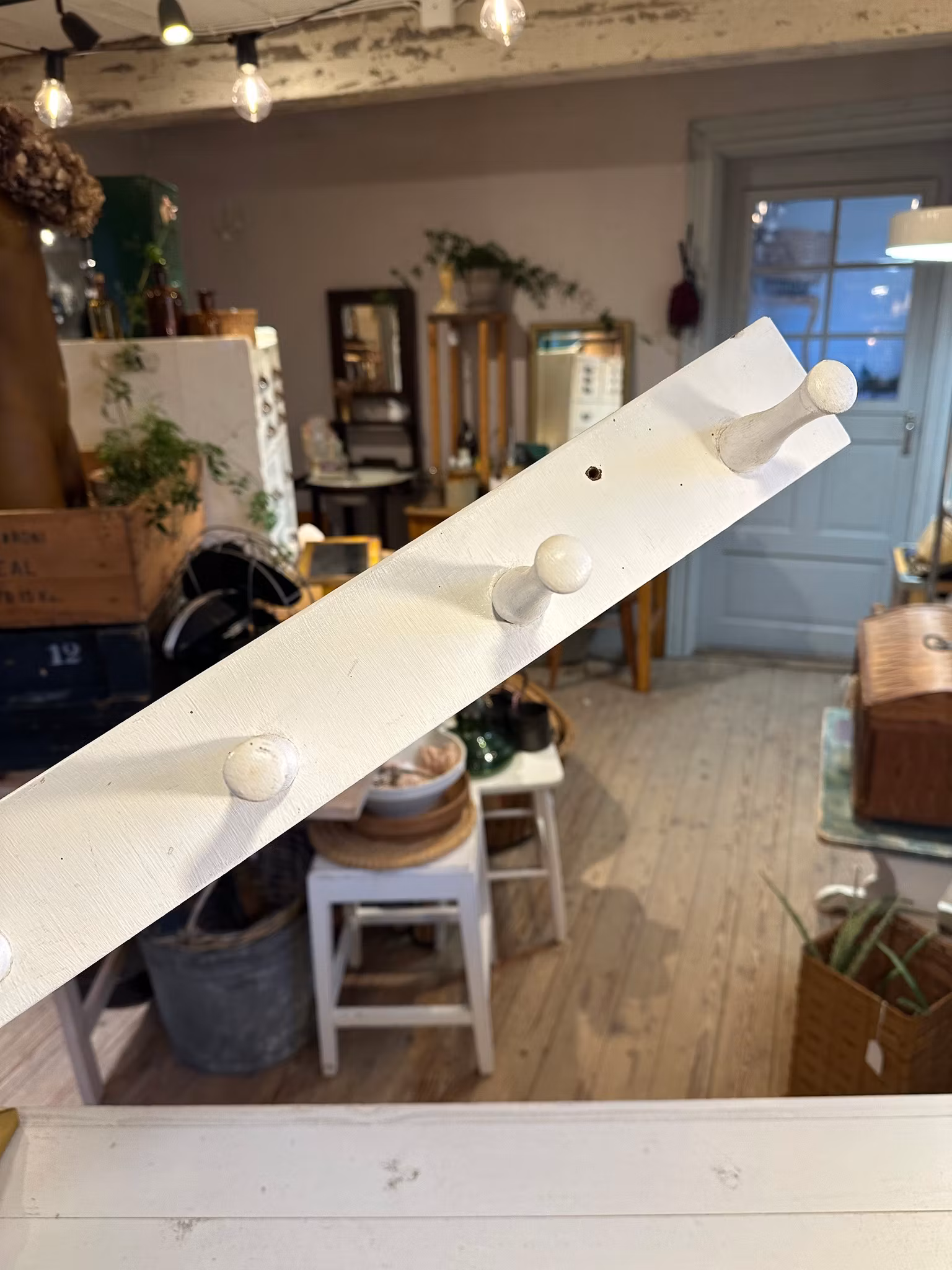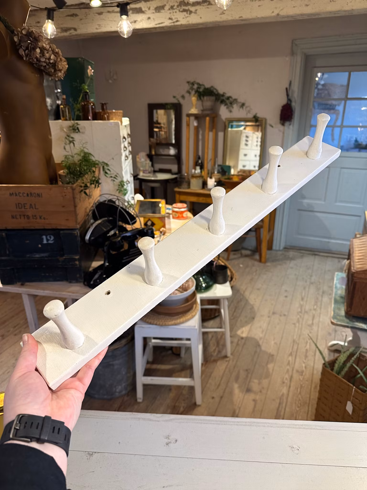 Fin klassisk kroklist/hängare i vitmålat trä med fem krokar.