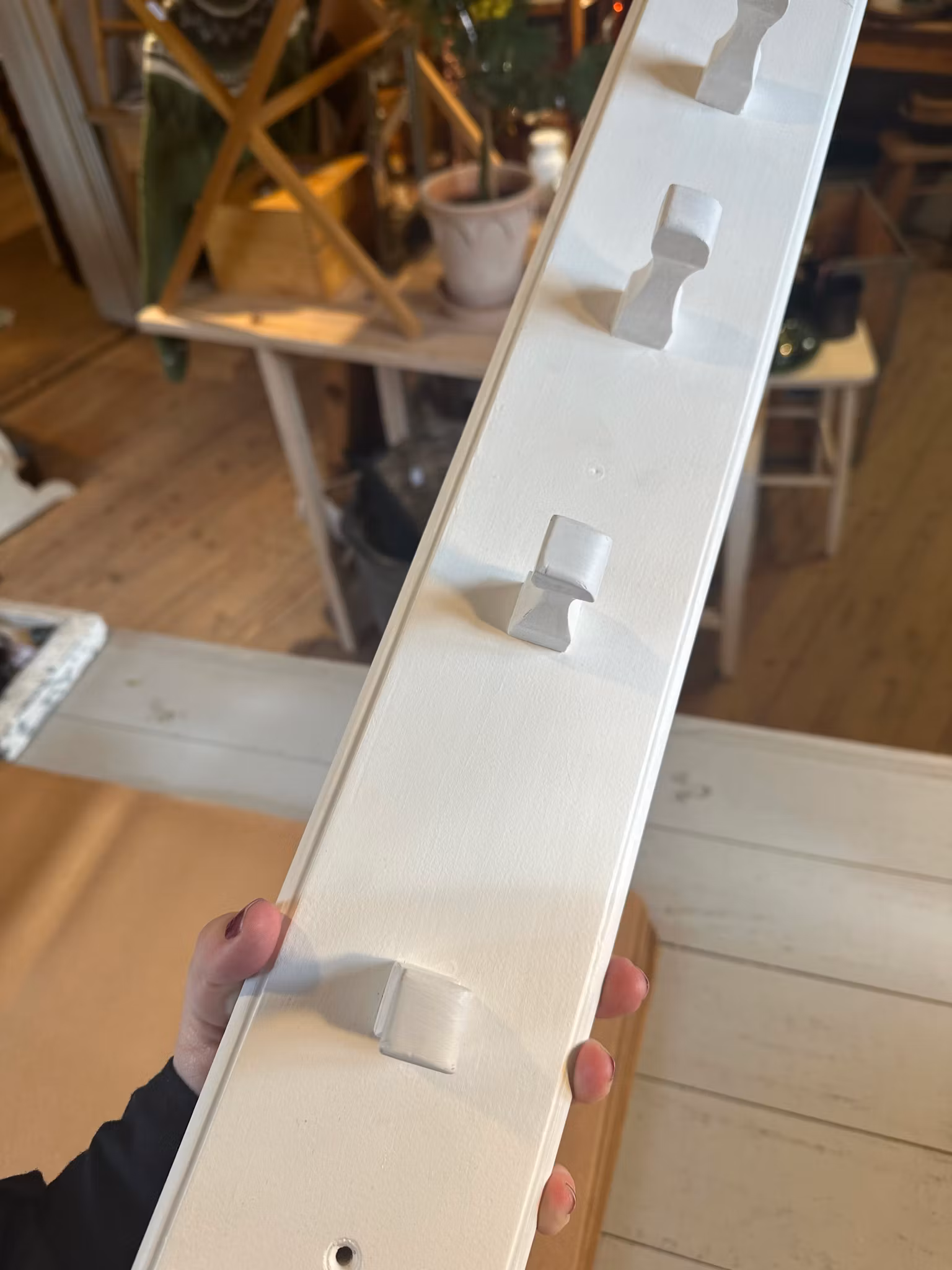 Fin kroklist i trä. 6st hängare. Vitmålad av tidigare ägare. Nyare produktion.