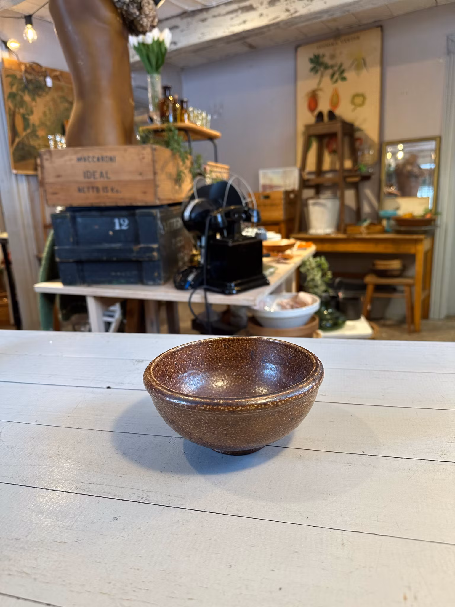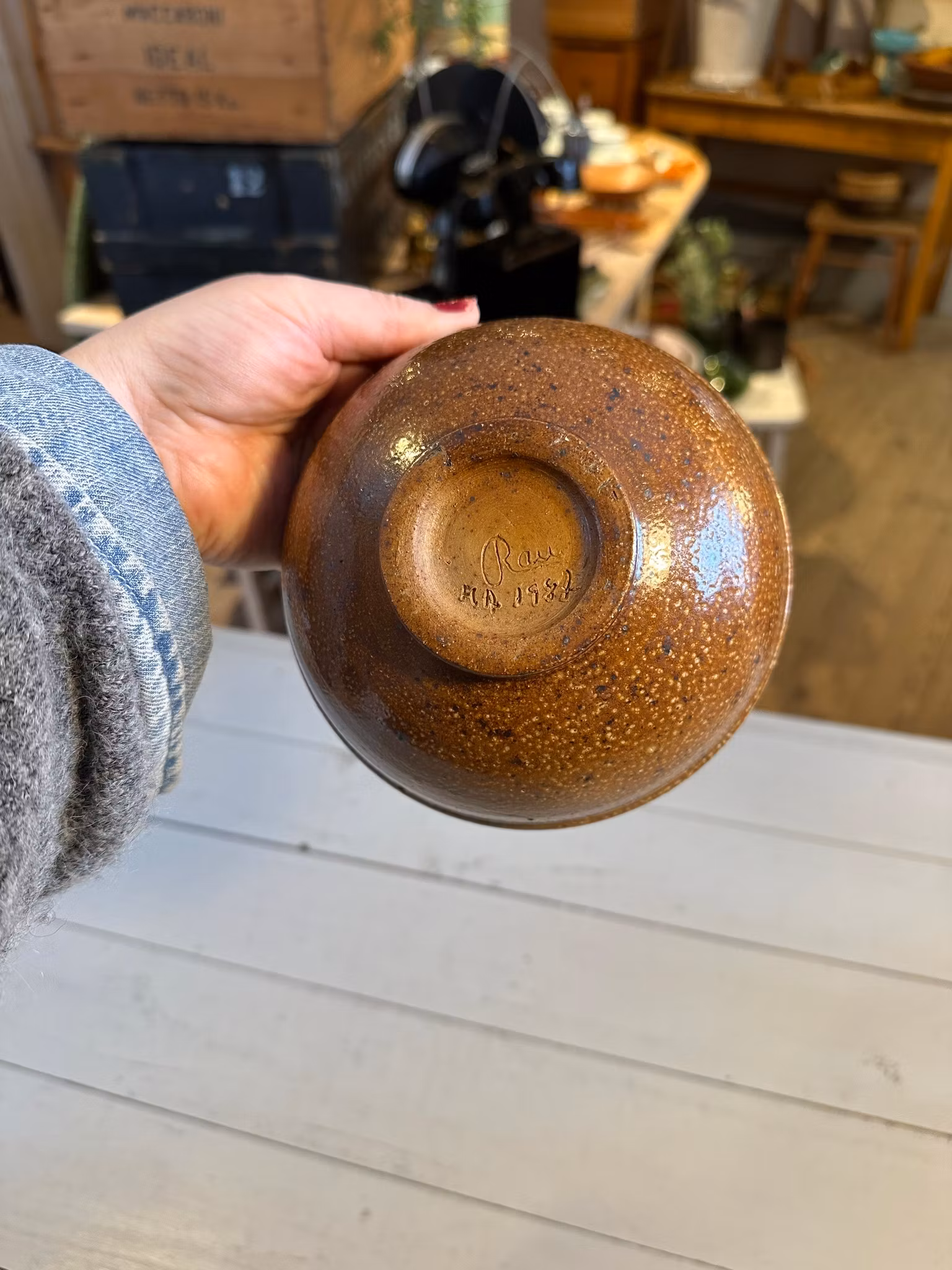 I gott använt och åldrat skick. Spår av användning och ålder finns över hela. Se bilder för skick. Lite kalkspår inuti då någon nog haft vatten stående i den.