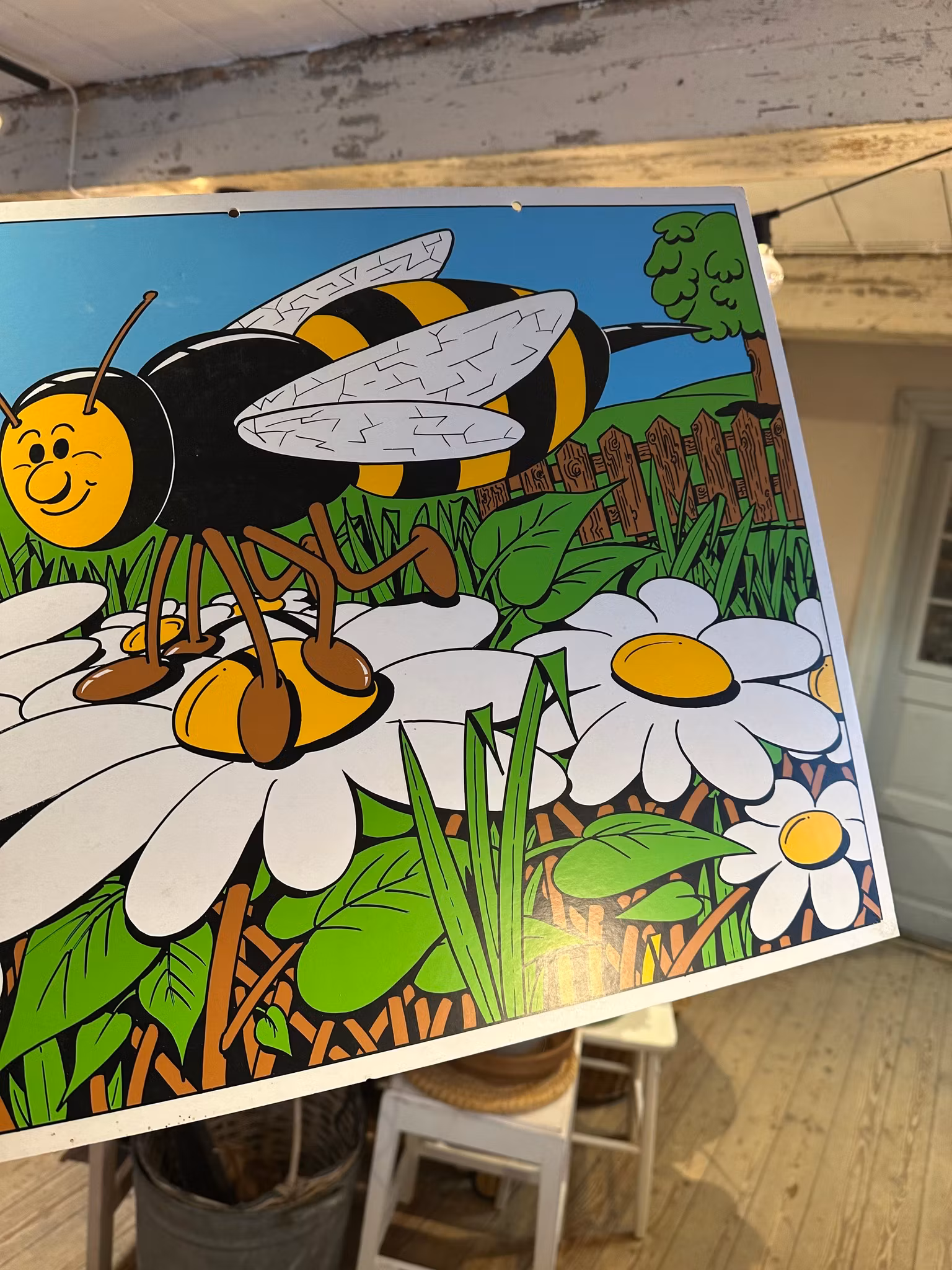 Charmig liten plansch med dubbelsidigt motiv. I gott använt och åldrat skick. Spår av användning finns över hela. Se bilder för skick. Mått ca 57*42cm.