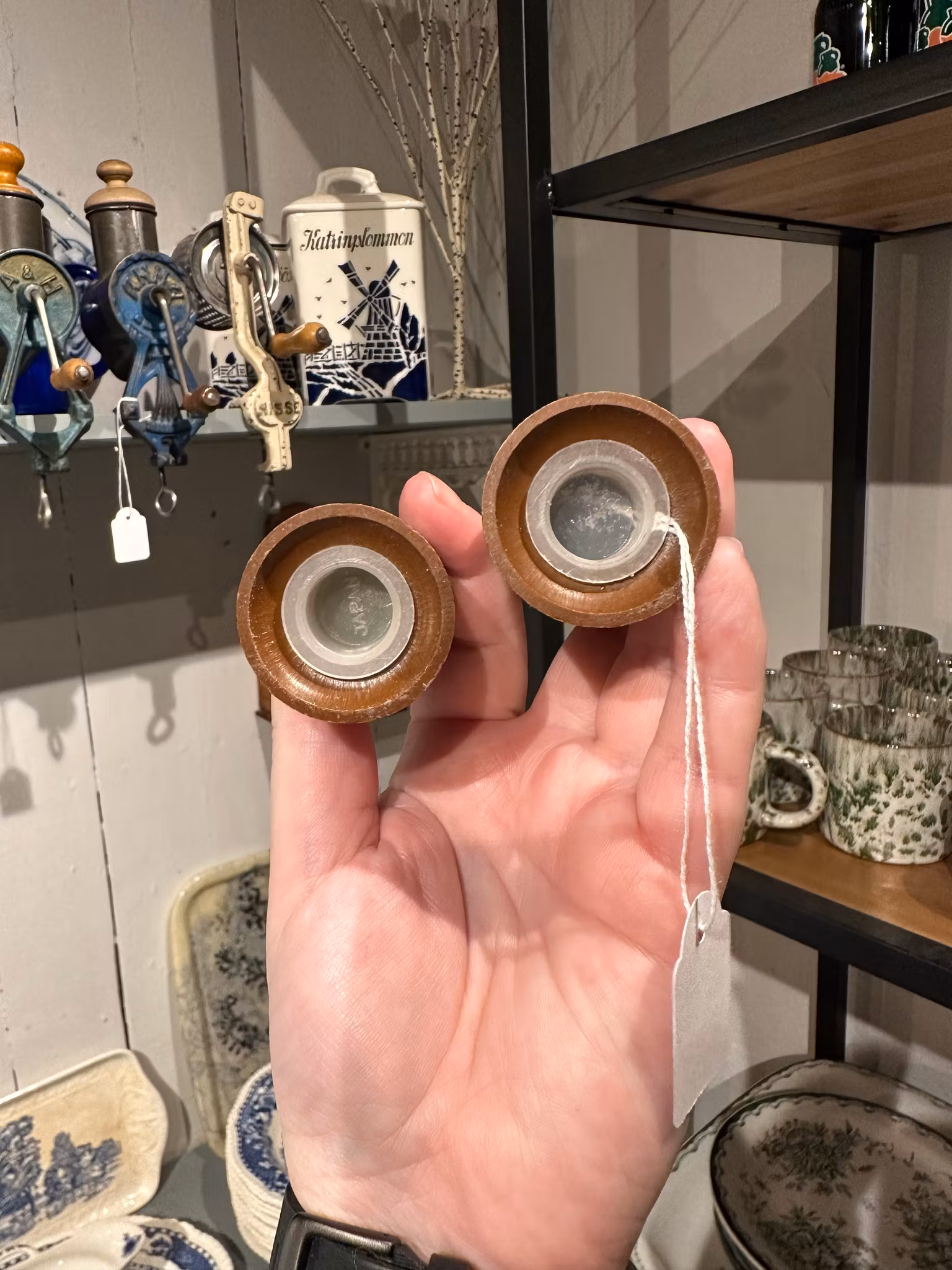 I gott använt och åldrat skick. Spår av användning och ålder över hela. Se bilder för skick. Ej rengjorda inuti så har nog inte kryddrester.