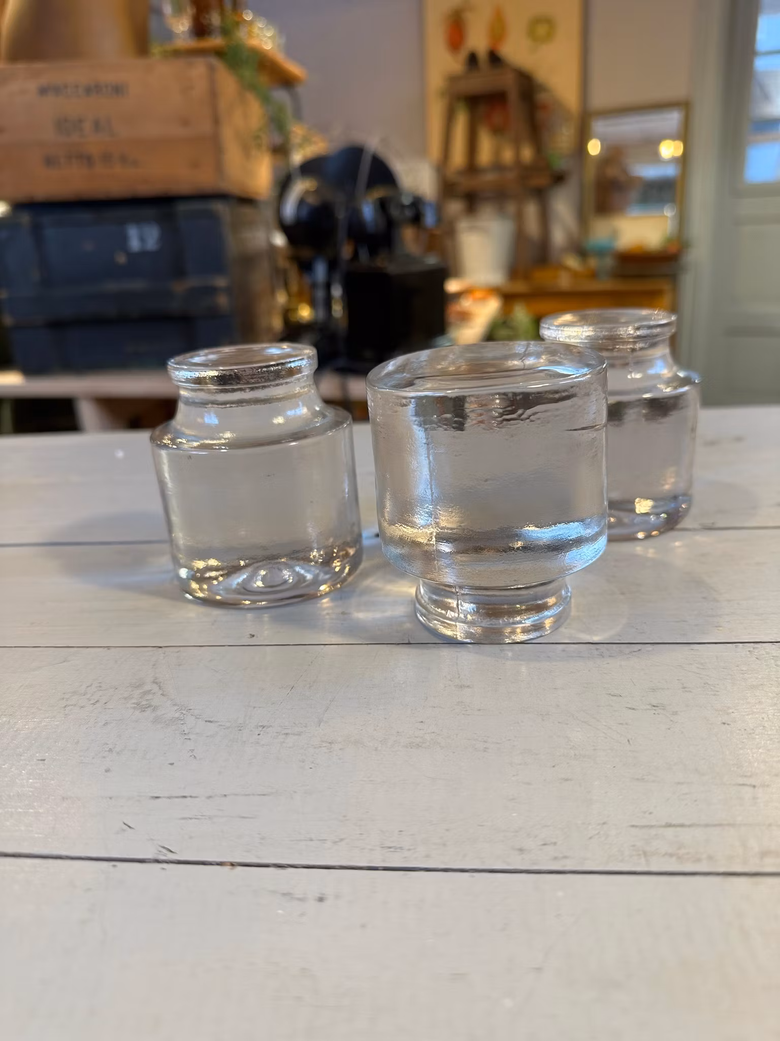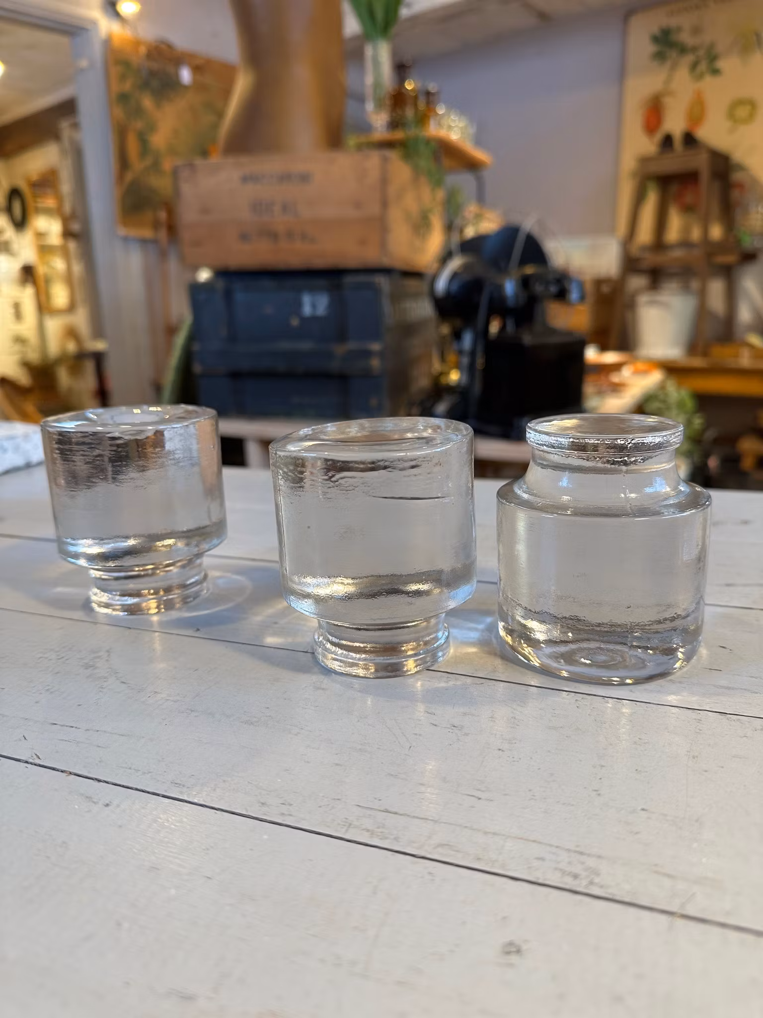 Fina tyngder gjorda helt i glas. Kanske brevtyngder, kanske tyngder för tex fermentering eller bara fina som dekoration.