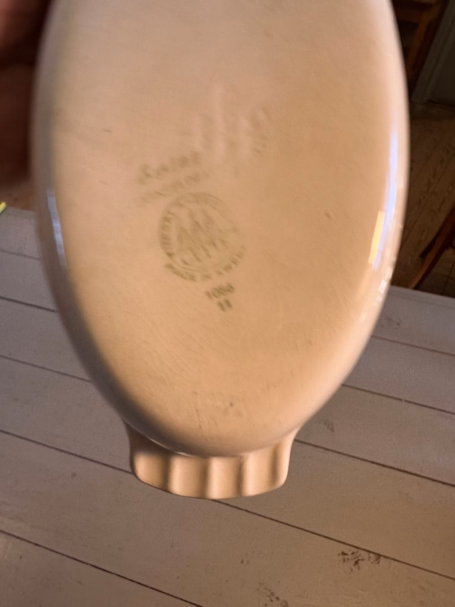 I gott använt och åldrat skick. Spår av användning och ålder finns över hela. Se bilder för skick. Åldrad i glasyren så skiftar i lite brun och är lite krackelerad i just glasyren, normalt med åldern på gammal porslin.