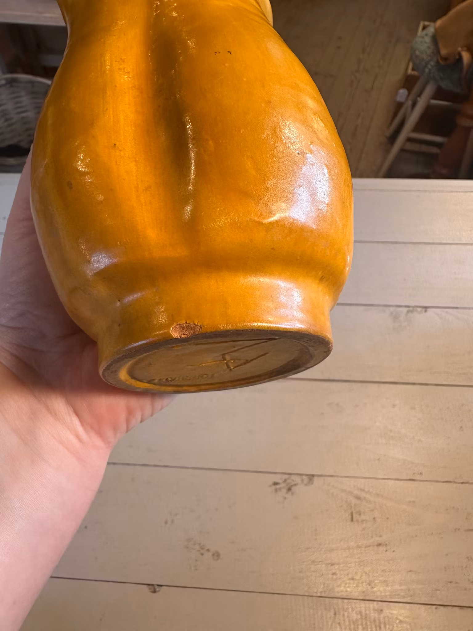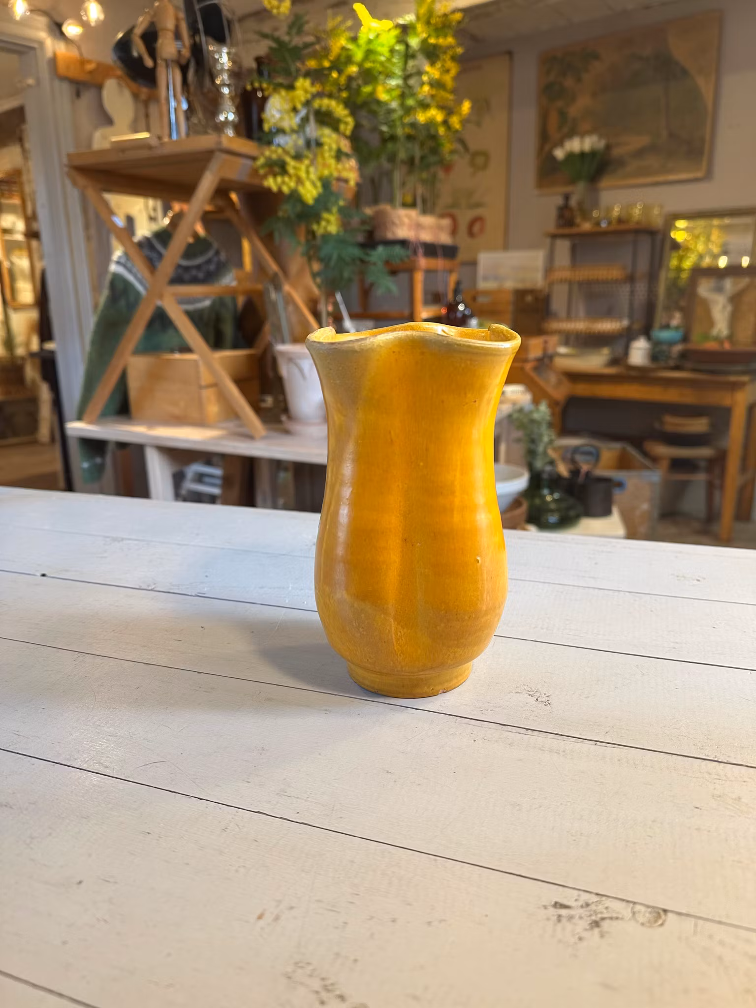 Underbar vas i keramik i den finaste gula nyansen och med vackra former. Gjord av Allan Ebeling, Torshälla. Se märkning undertill.