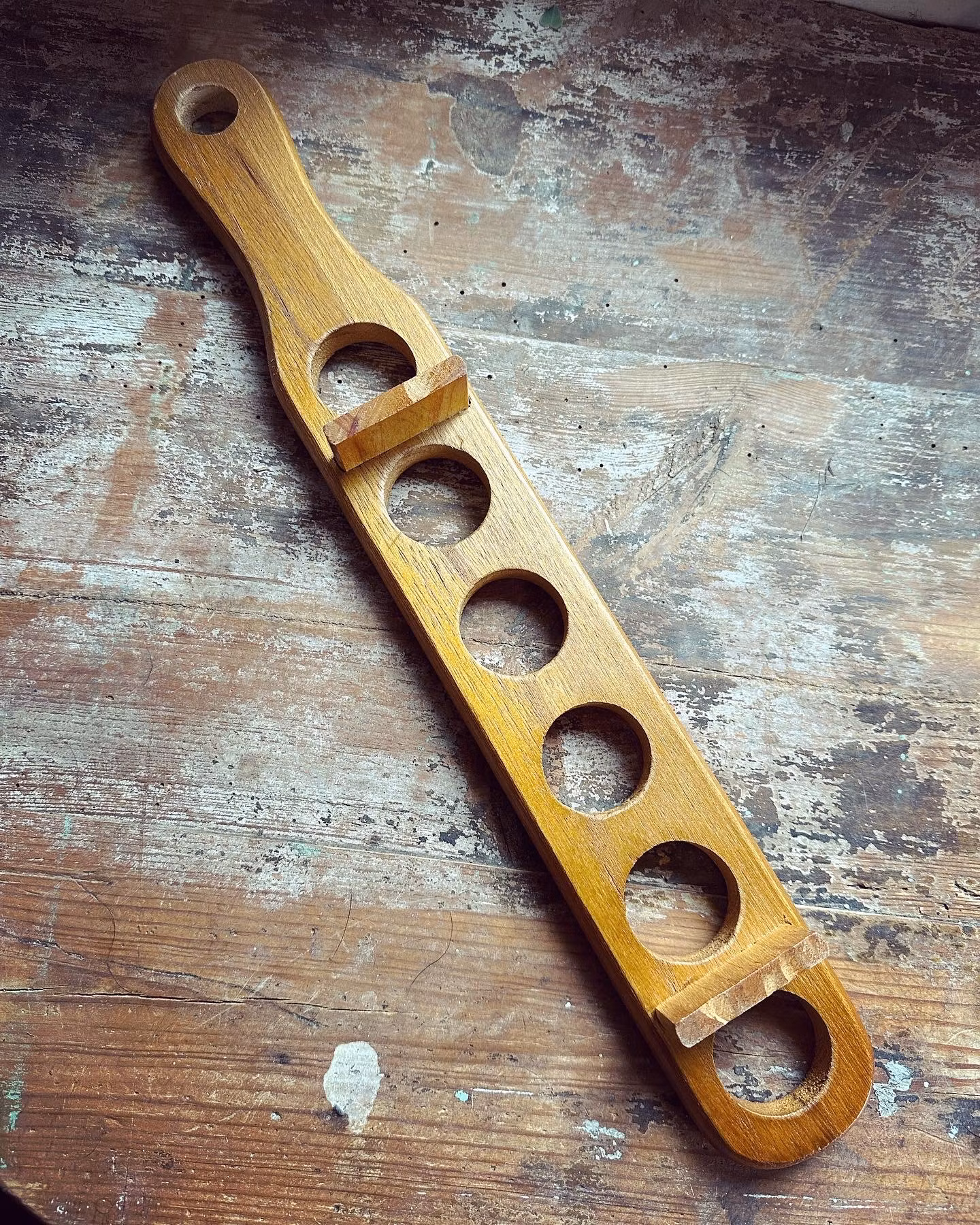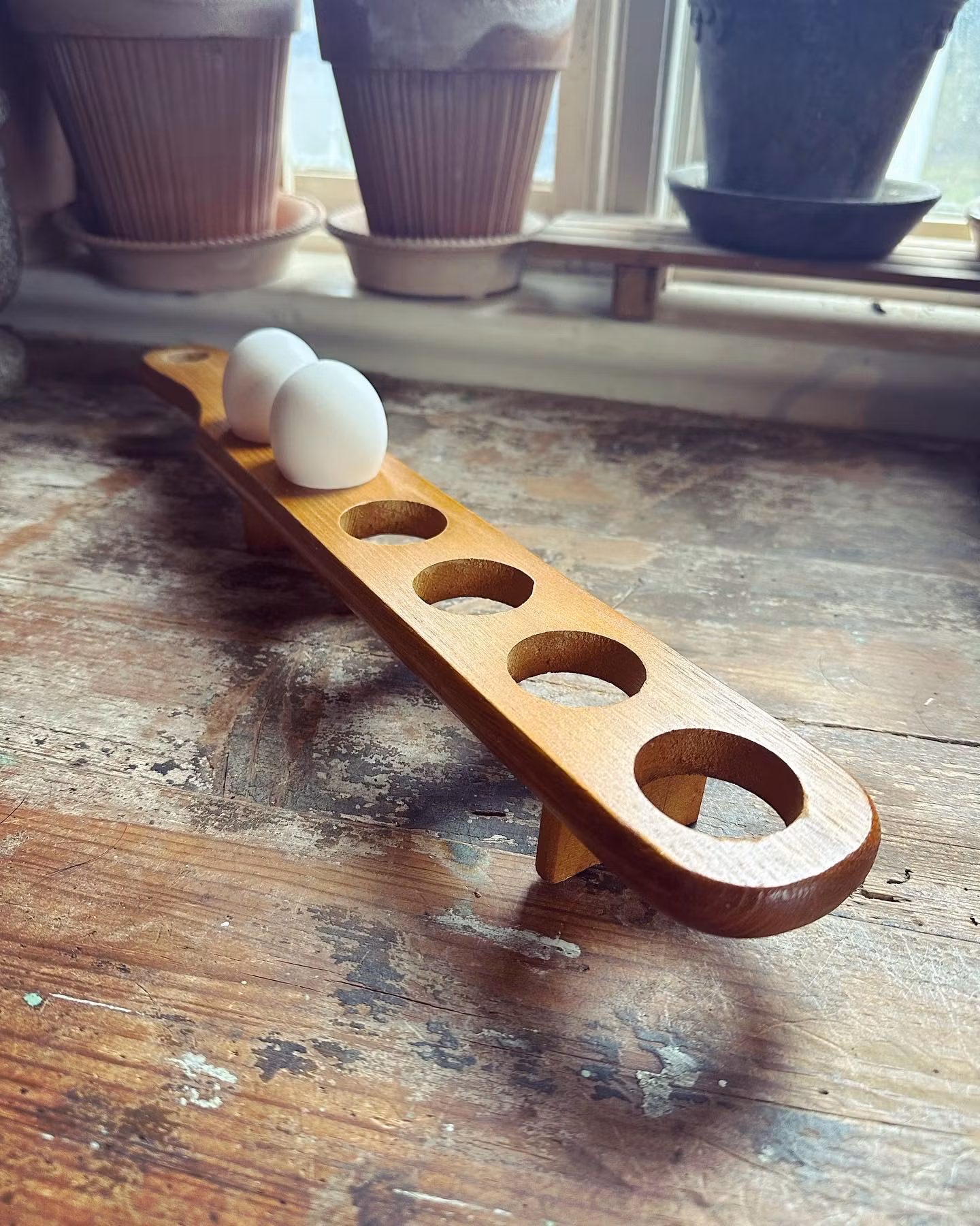 Äggställ 150 kr Fint lite annorlunda äggställ gjort i ett lätt träslag. I gott använt skick. Spår av ålder och användning finns. Se bilder för skick. Mått ca 44,5 Produkten är tyvärr slut i lager. Dela Information om produkten Fint lite annorlunda äggställ gjort i ett lätt träslag. I gott använt skick. Spår av ålder och användning finns. Se bilder för skick. Mått ca 44,5*6,5cm. Höjd ca 4cm.