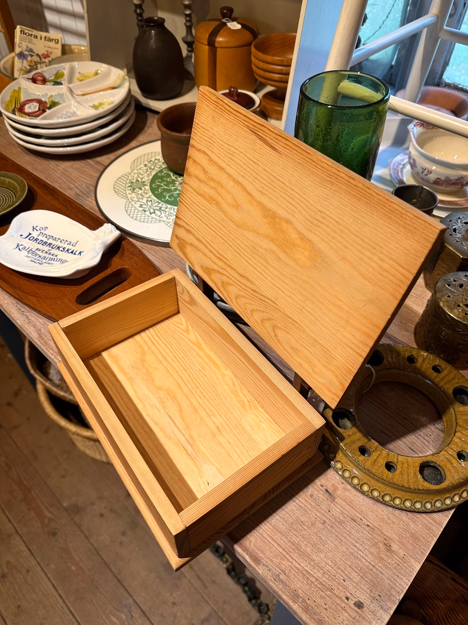 Söt liten trälåda gjord i olika sorters trä. Märkt undertill så kanske ett slöjdarbete i skolan.