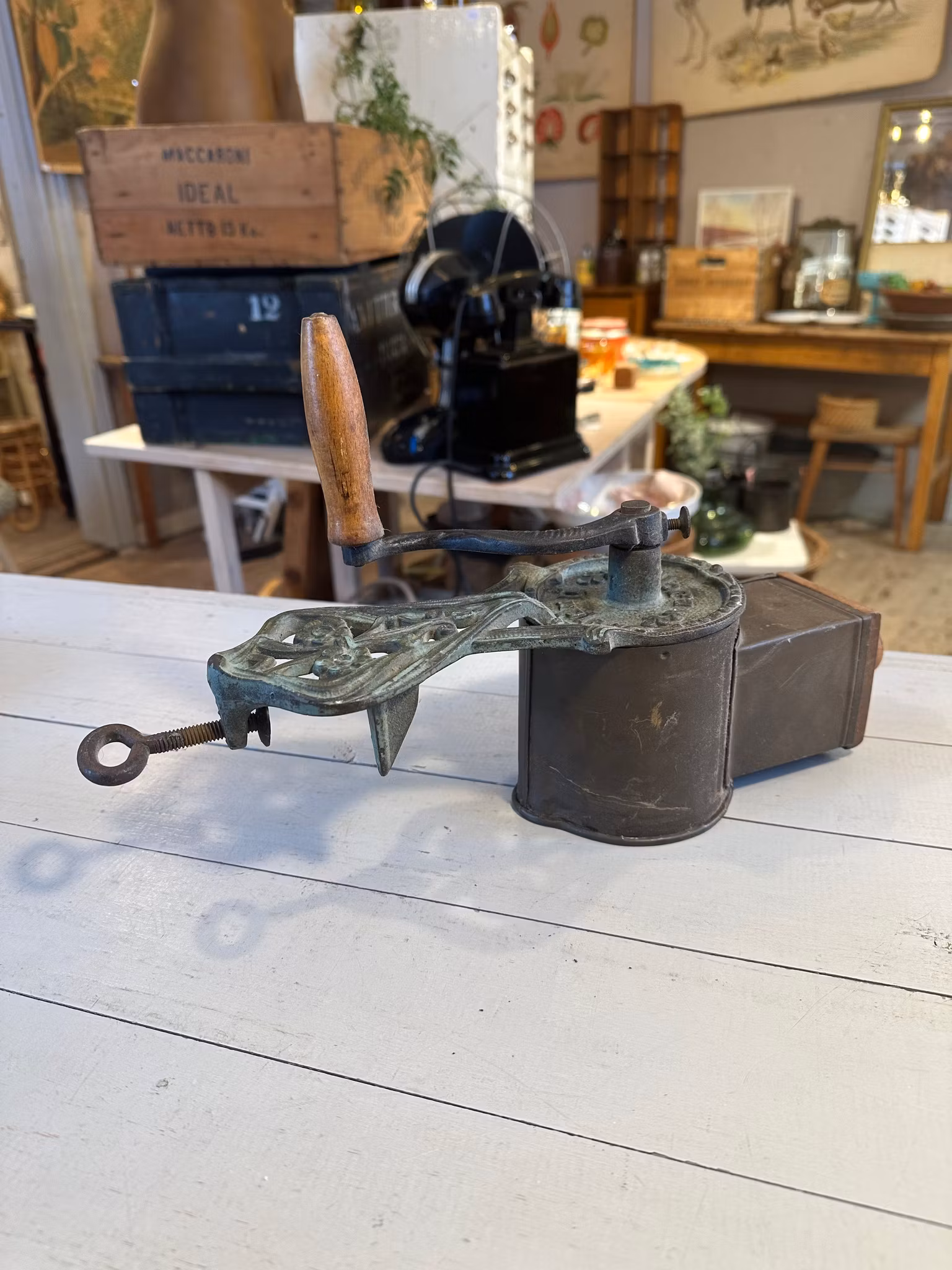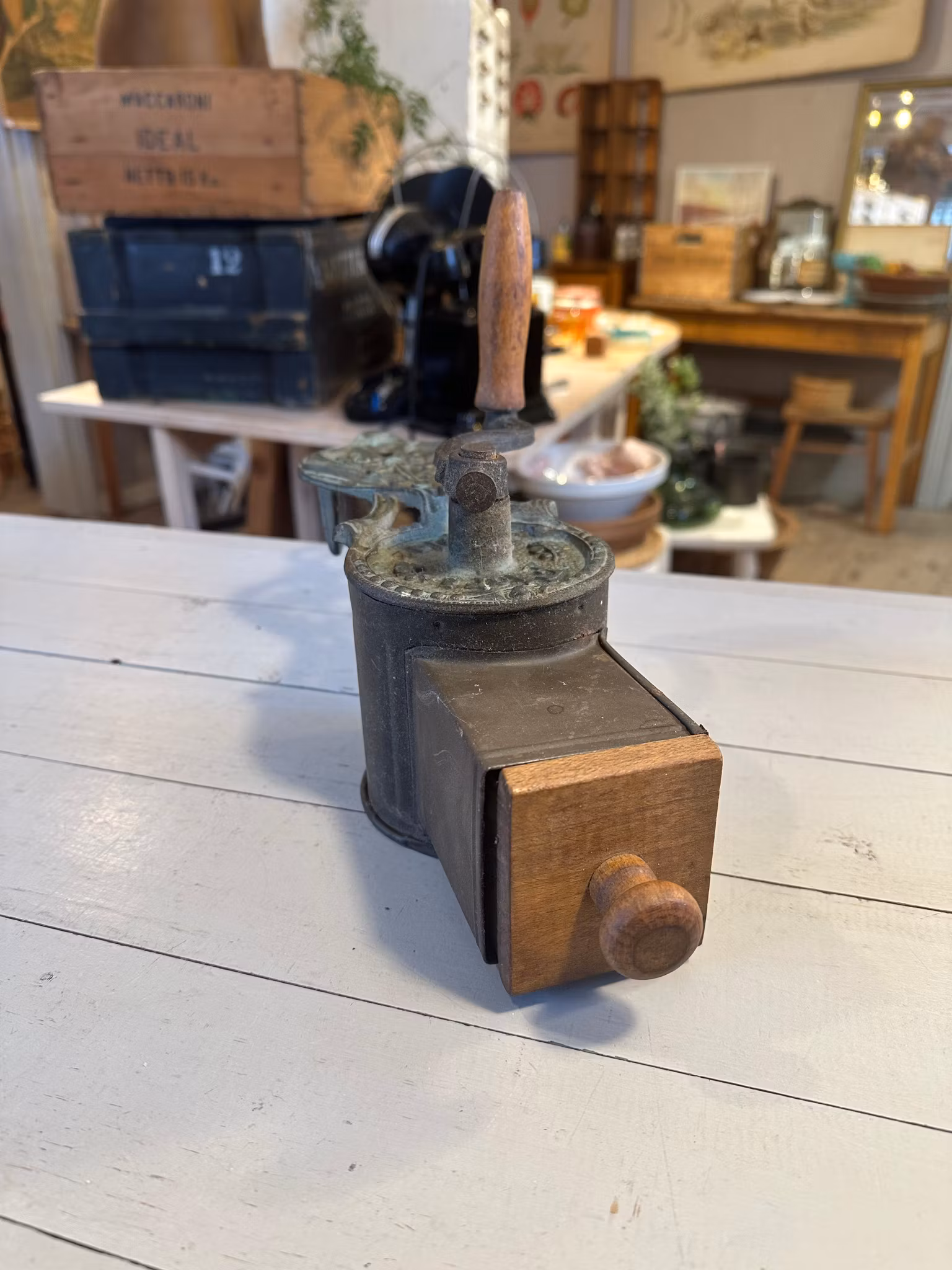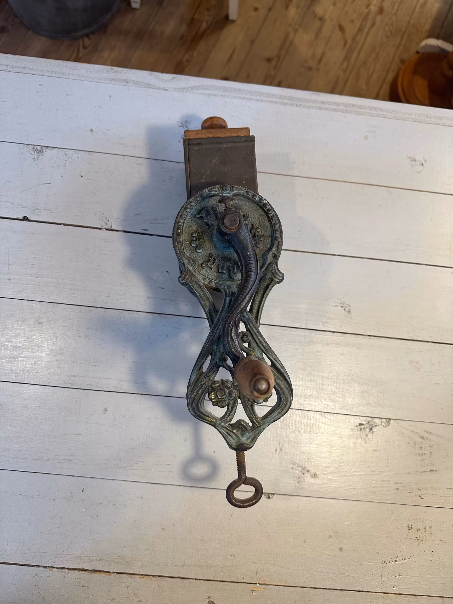 I gott använt och åldrat skick. Spår av användning och ålder finns över hela. Se bilder för skick. Lite trög i veven. För dekoration snarare än användning. Avtorkad men inte rengjord inuti.