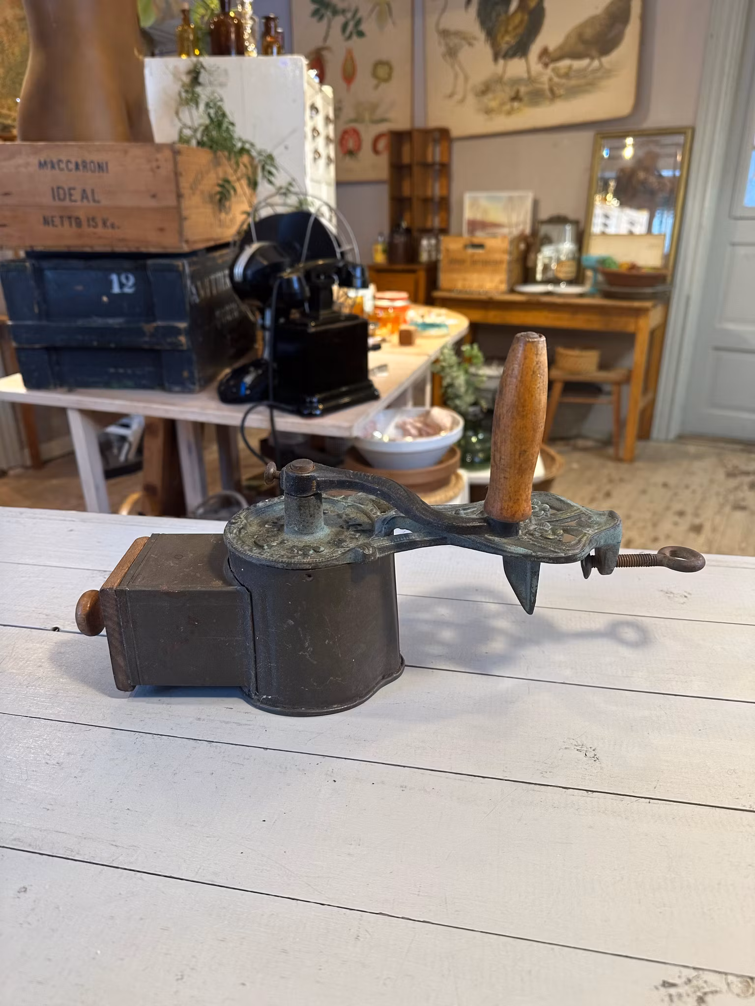 Vacker och ovanligt stor mandelkvarn i blågrå nyans med fin patina. För dekoration. Perfekt för ett blockljus eller liknande.
