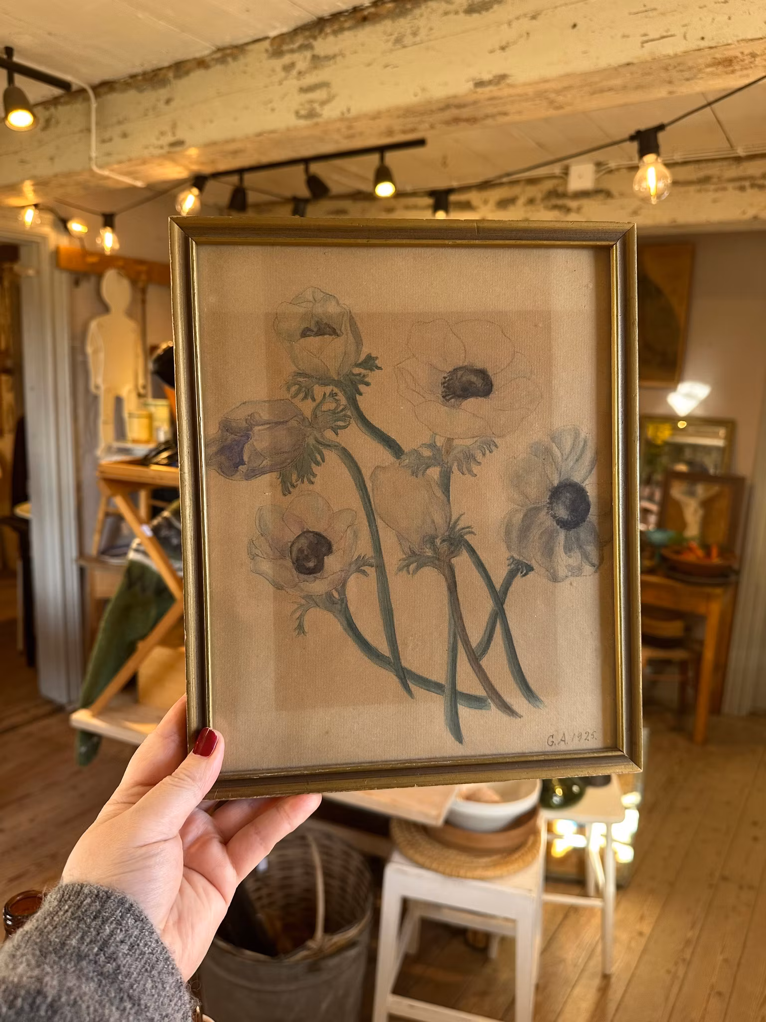 Vacker målning av vad jag tror är anemoner. Daterad 1925 i hörnet.