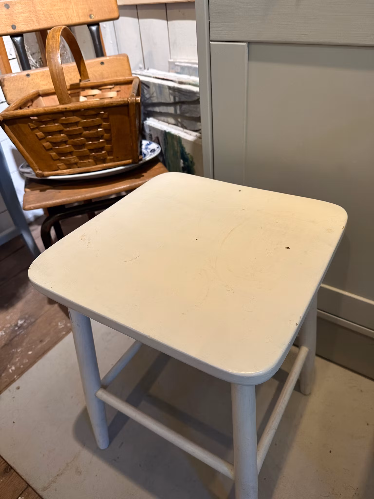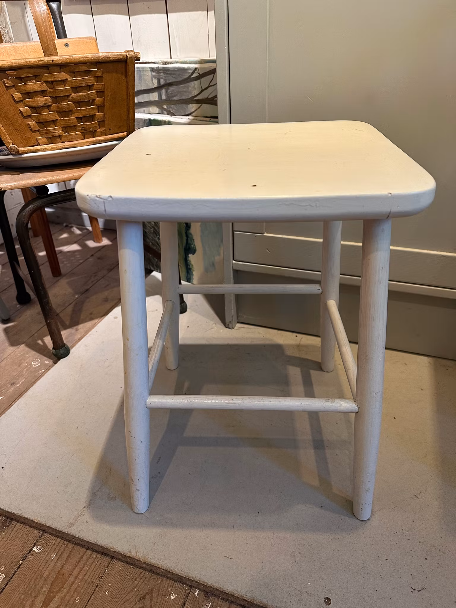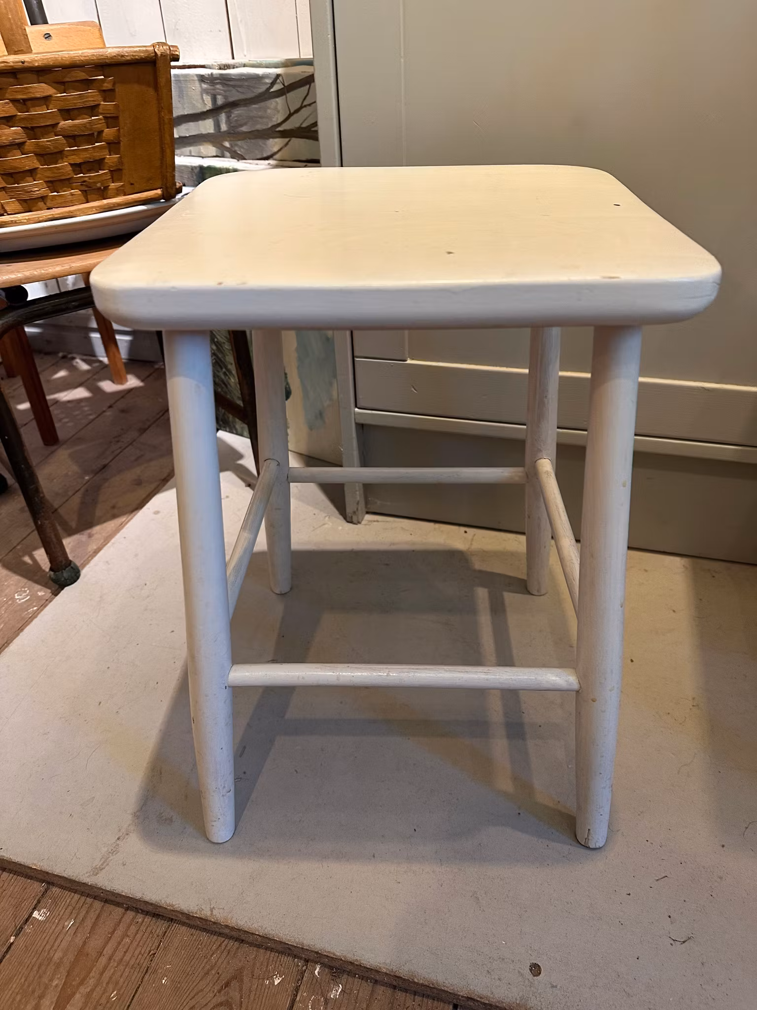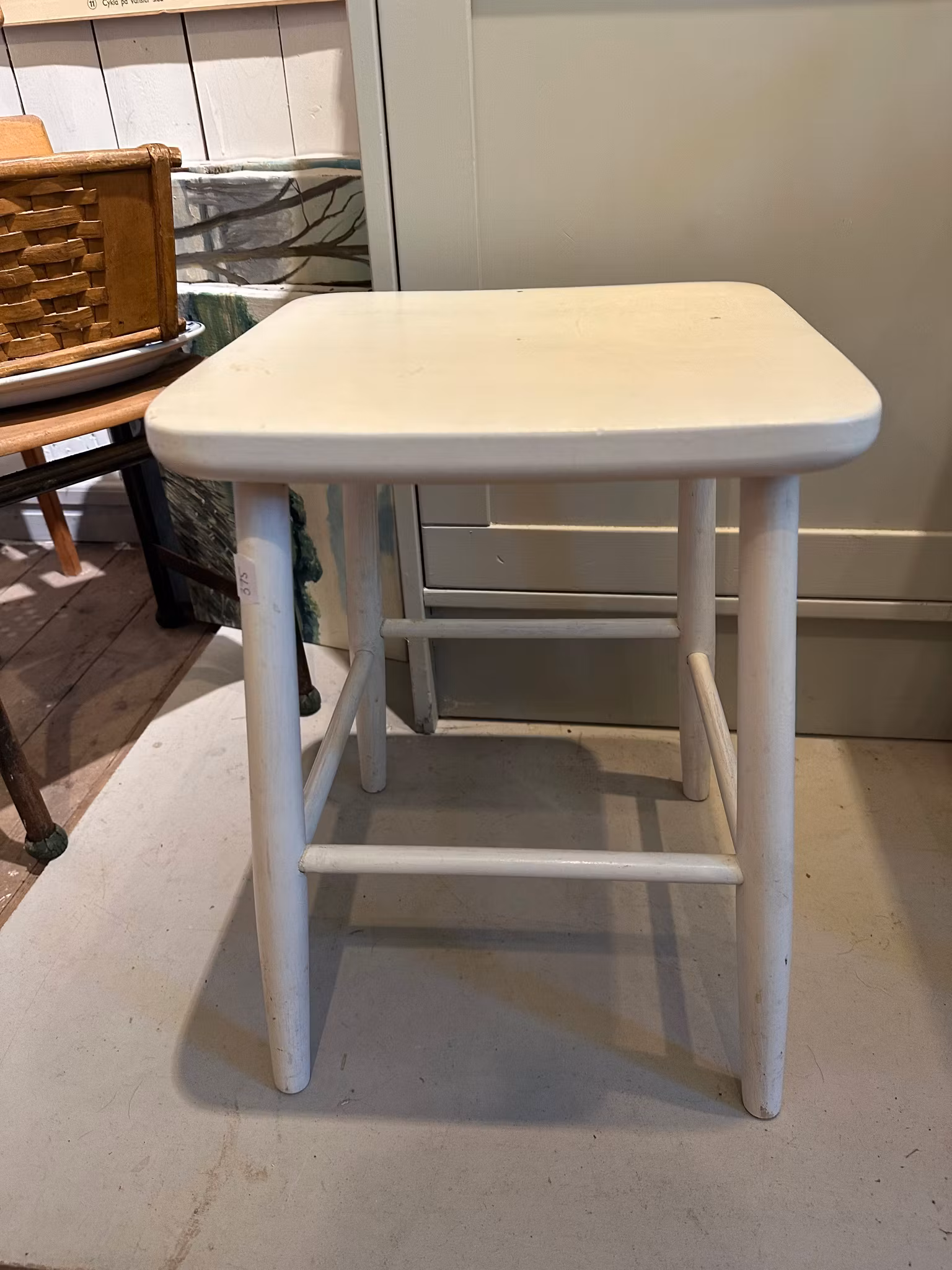 Fin pall i trä med vit färg.