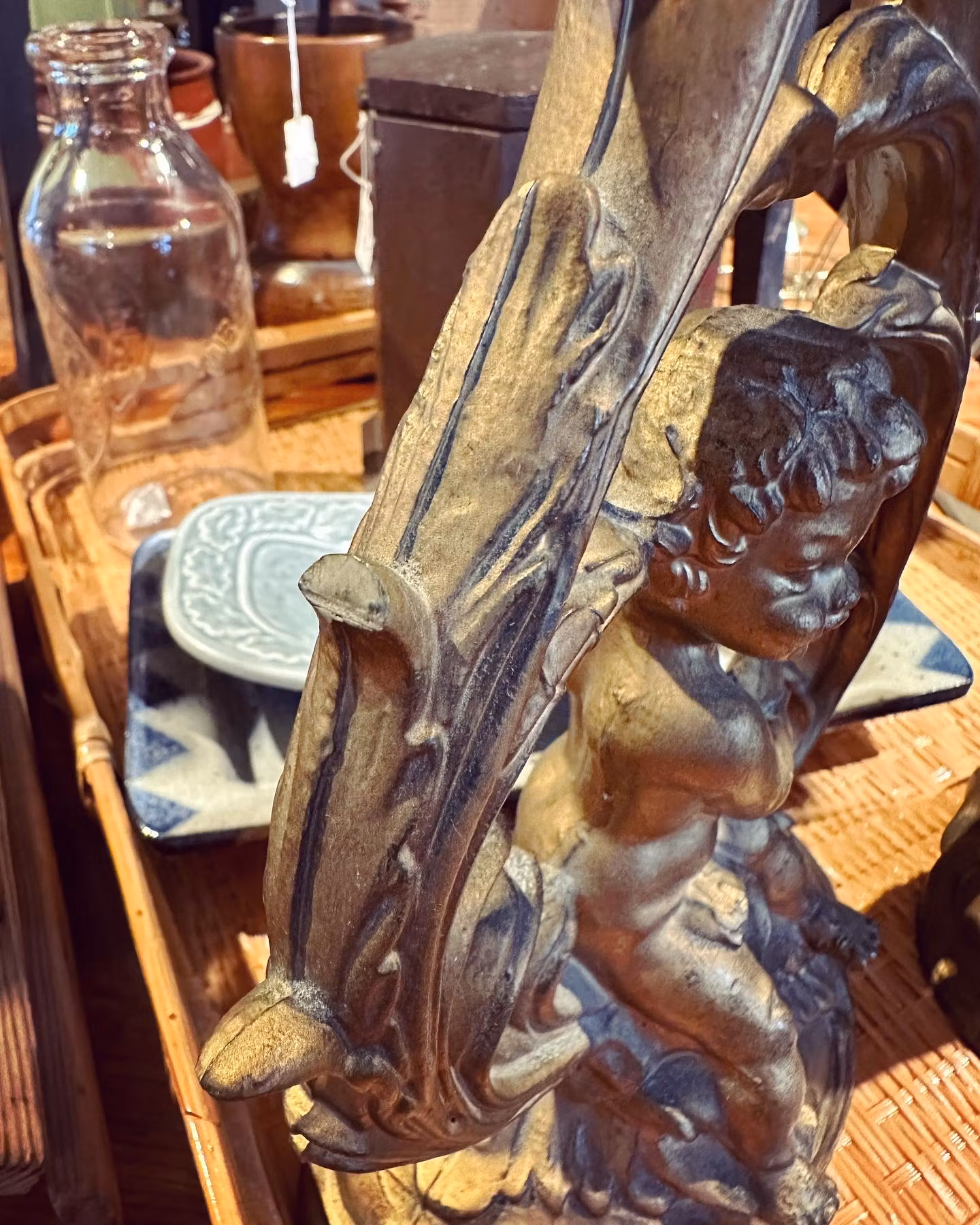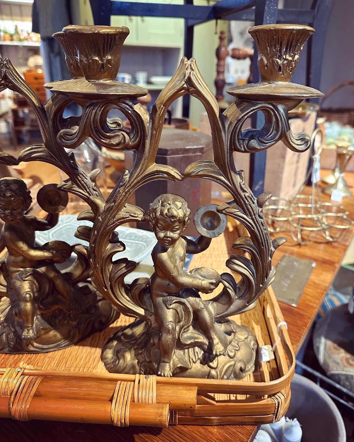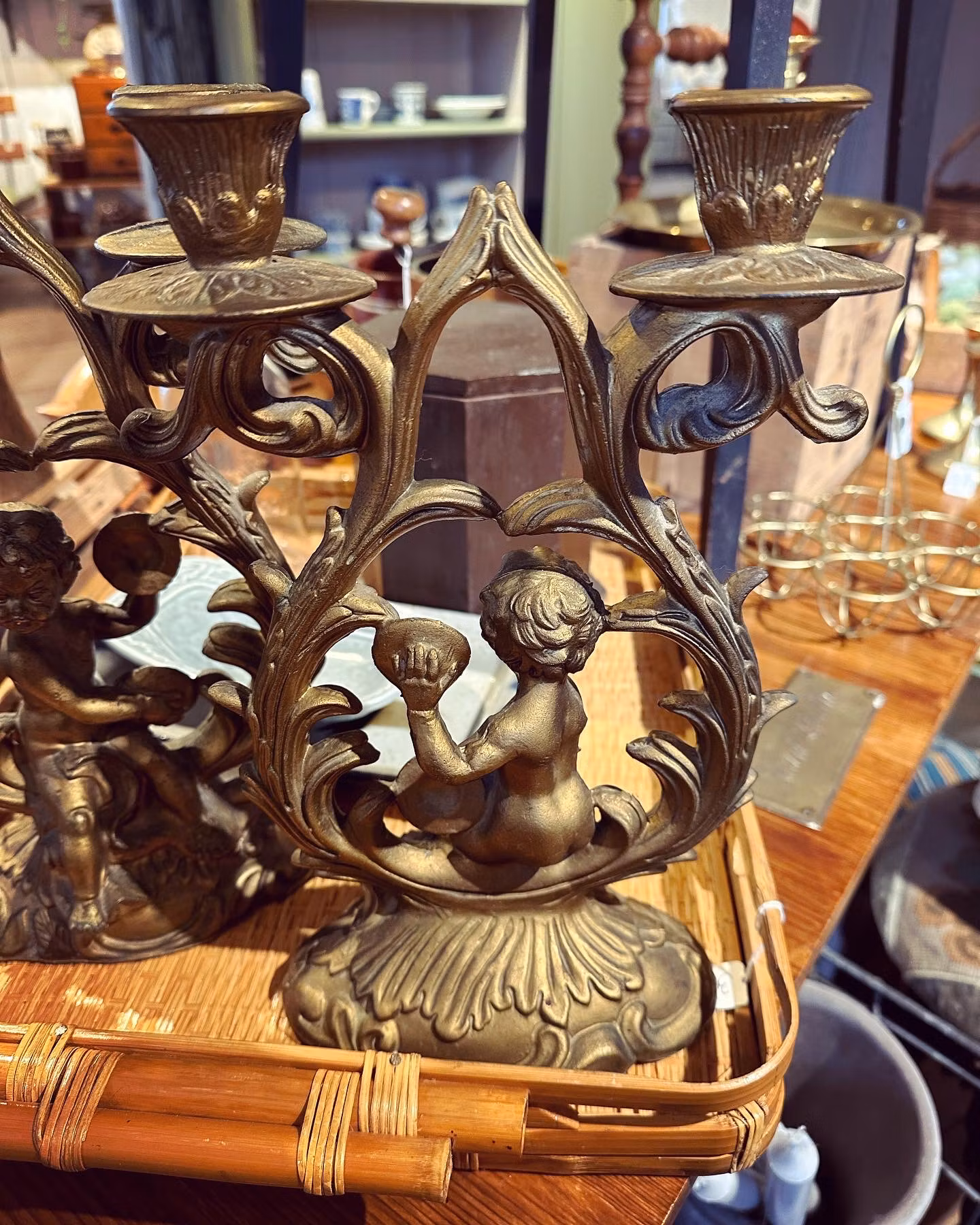 Underbara gamla ljusstakar i gjuten plast. Samma som man ibland ser på gamla Italienska solspeglar och liknande. Änglar och dekoration och vackra snirkliga former.