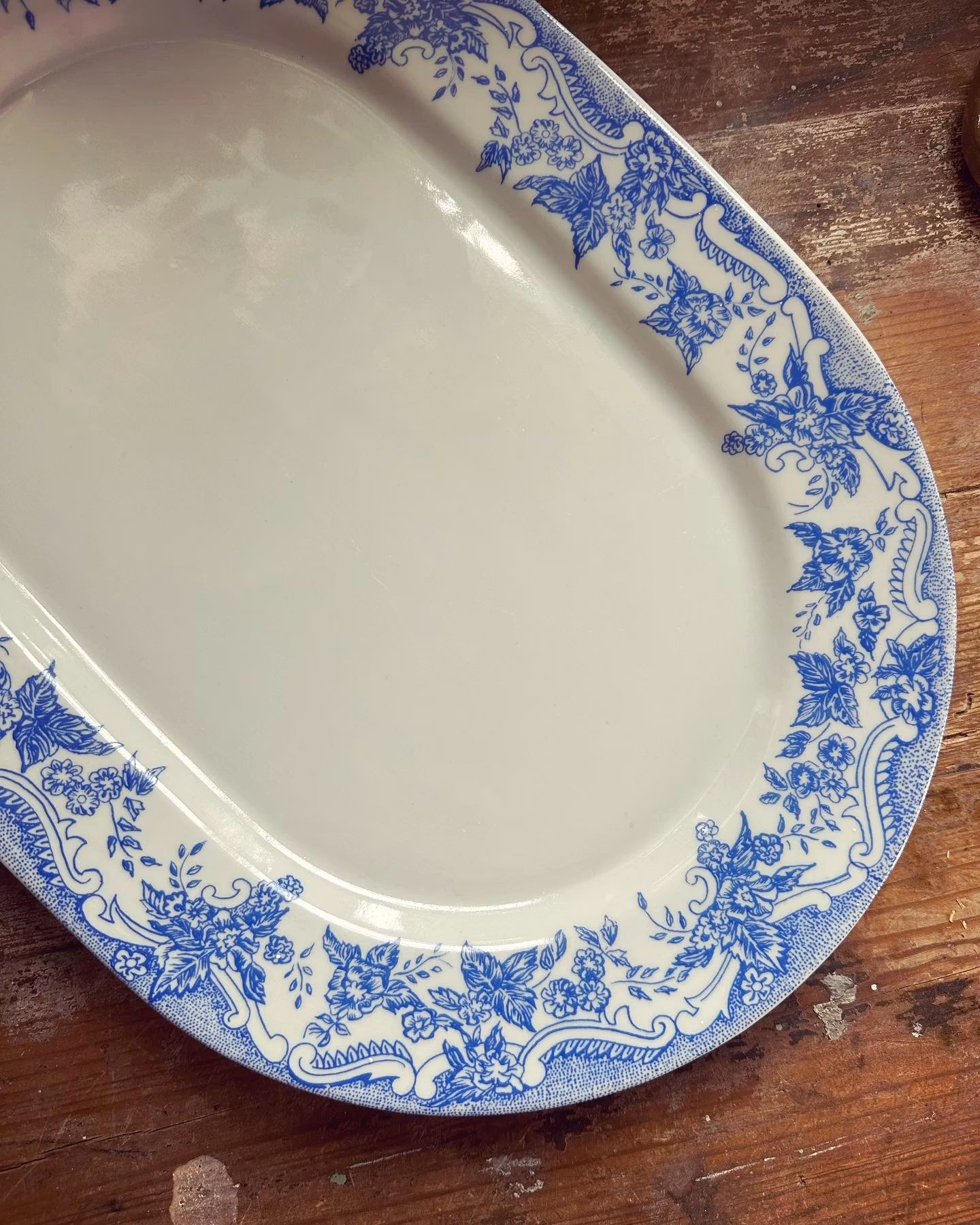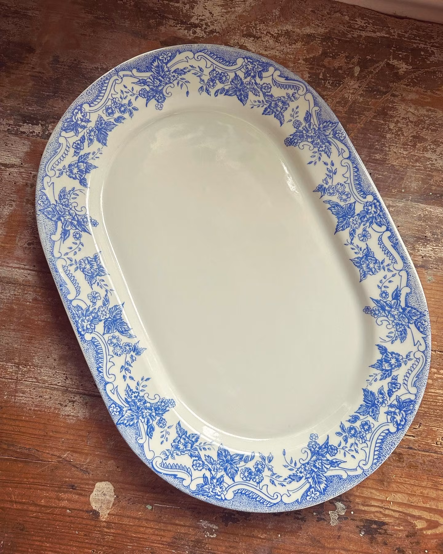 Blå/vitt uppläggningsfat 240 kr Fint fat i vitt med blå dekor på kanten. I gott använt och åldrat skick. Se bilder för skick. Mått ca 36*25*3cm. Produkten är tyvärr slut i lager. Dela Information om produkten Fint fat i vitt med blå dekor på kanten. I gott använt och åldrat skick. Se bilder för skick.Mått ca 36*25*3cm.