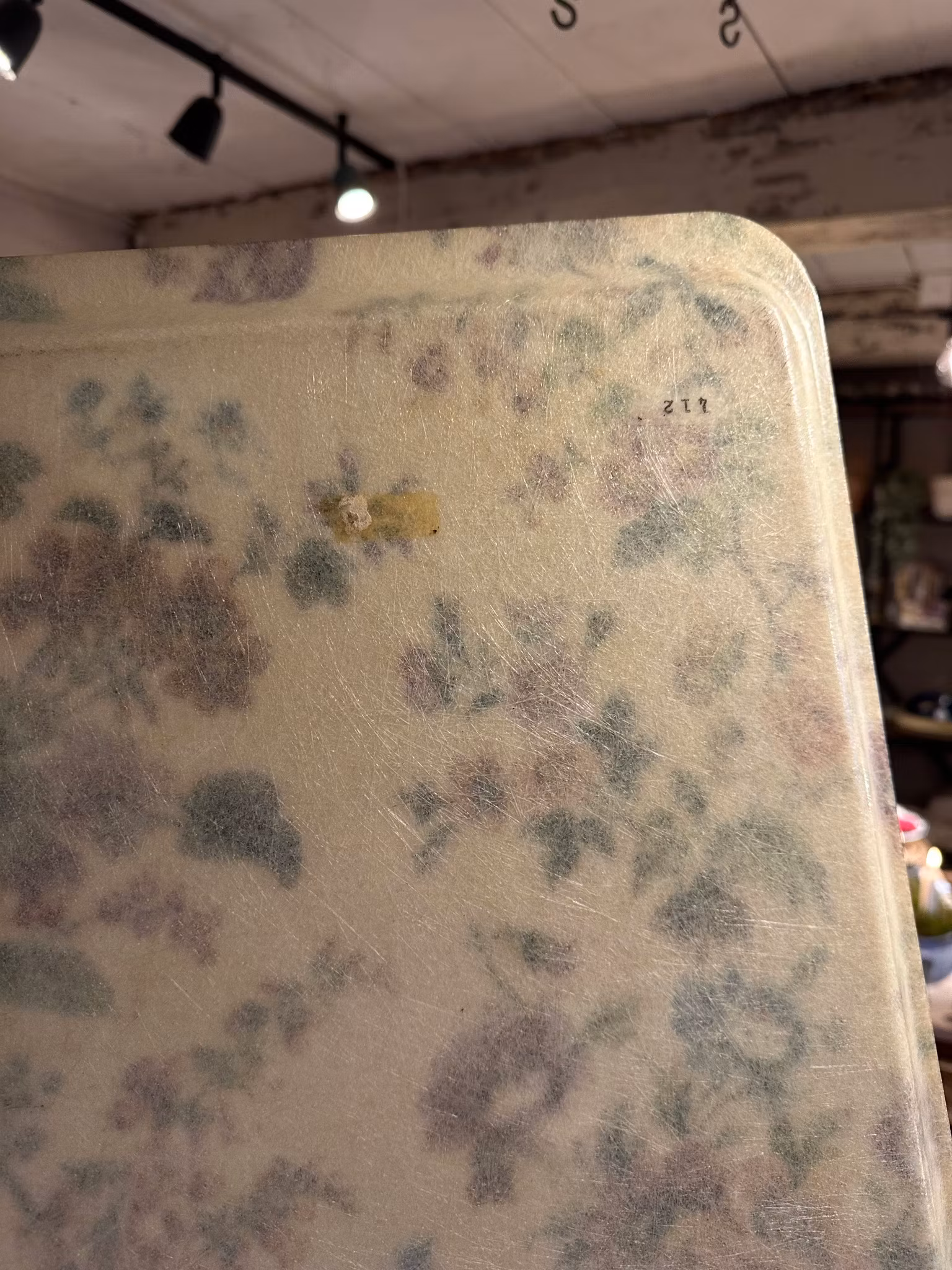 Fin bricka med blommotiv gjuten i någon form av plastmassa eller liknande.