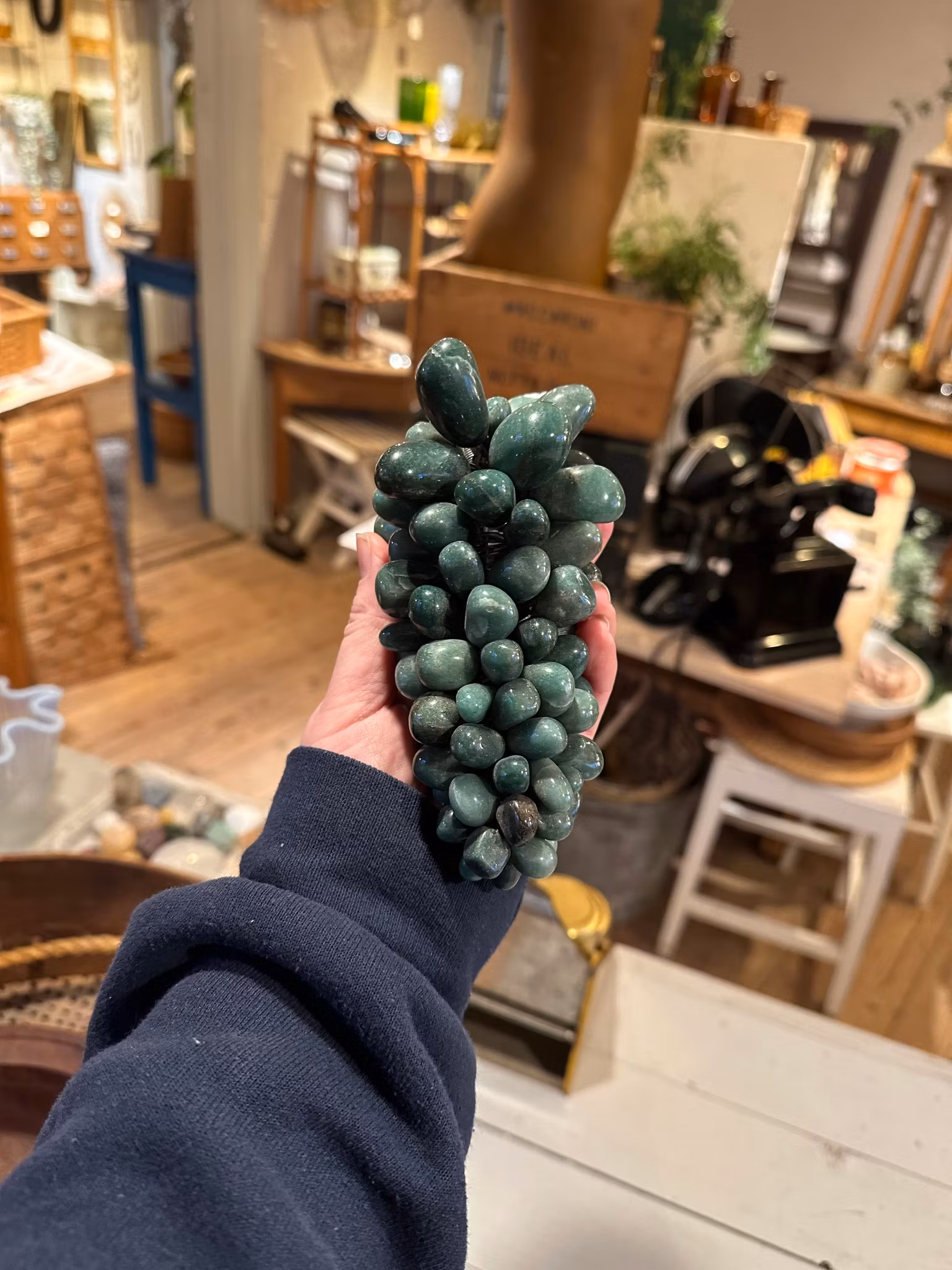 Fin dekorativ druvklase i sten i gröna nyanser.
