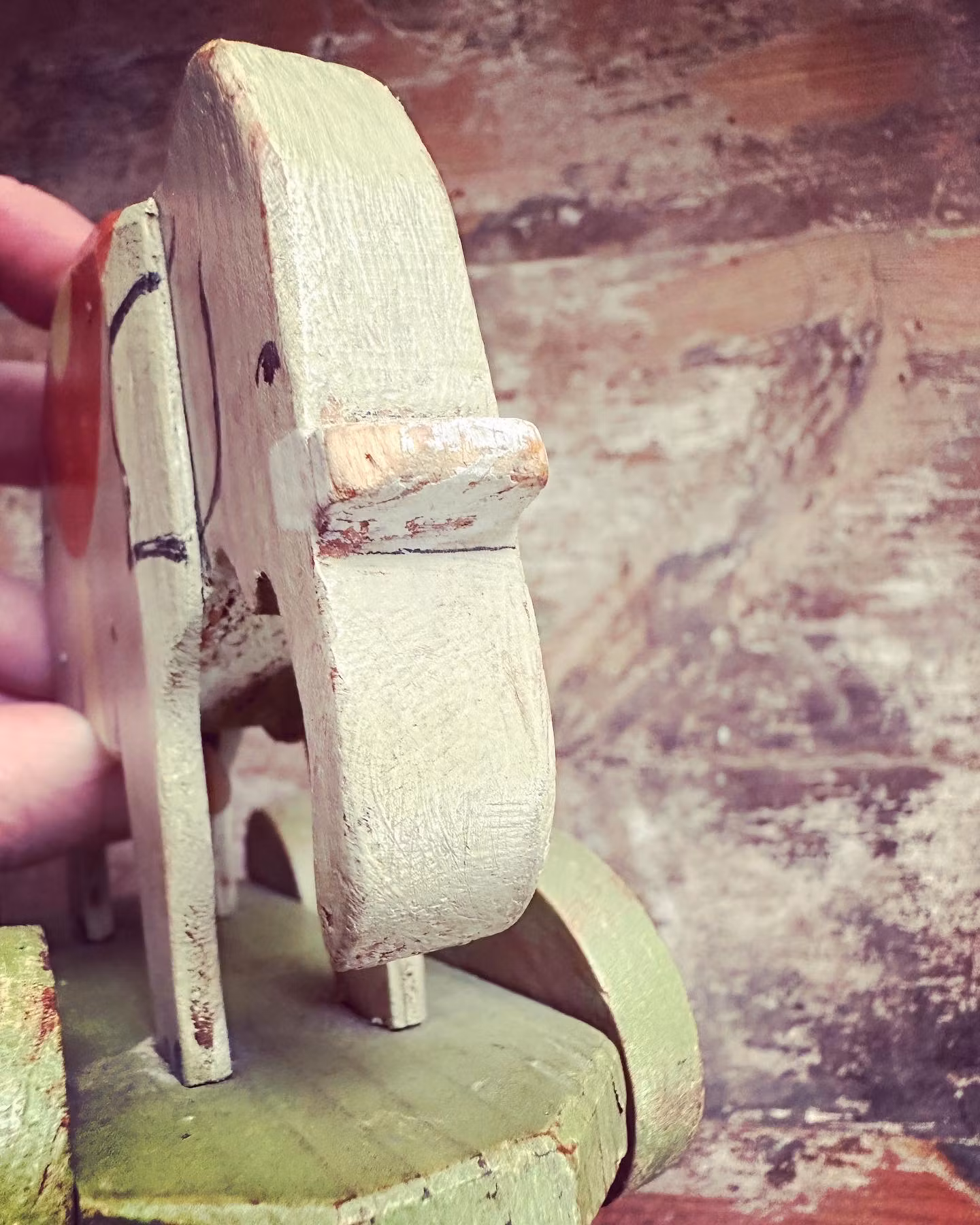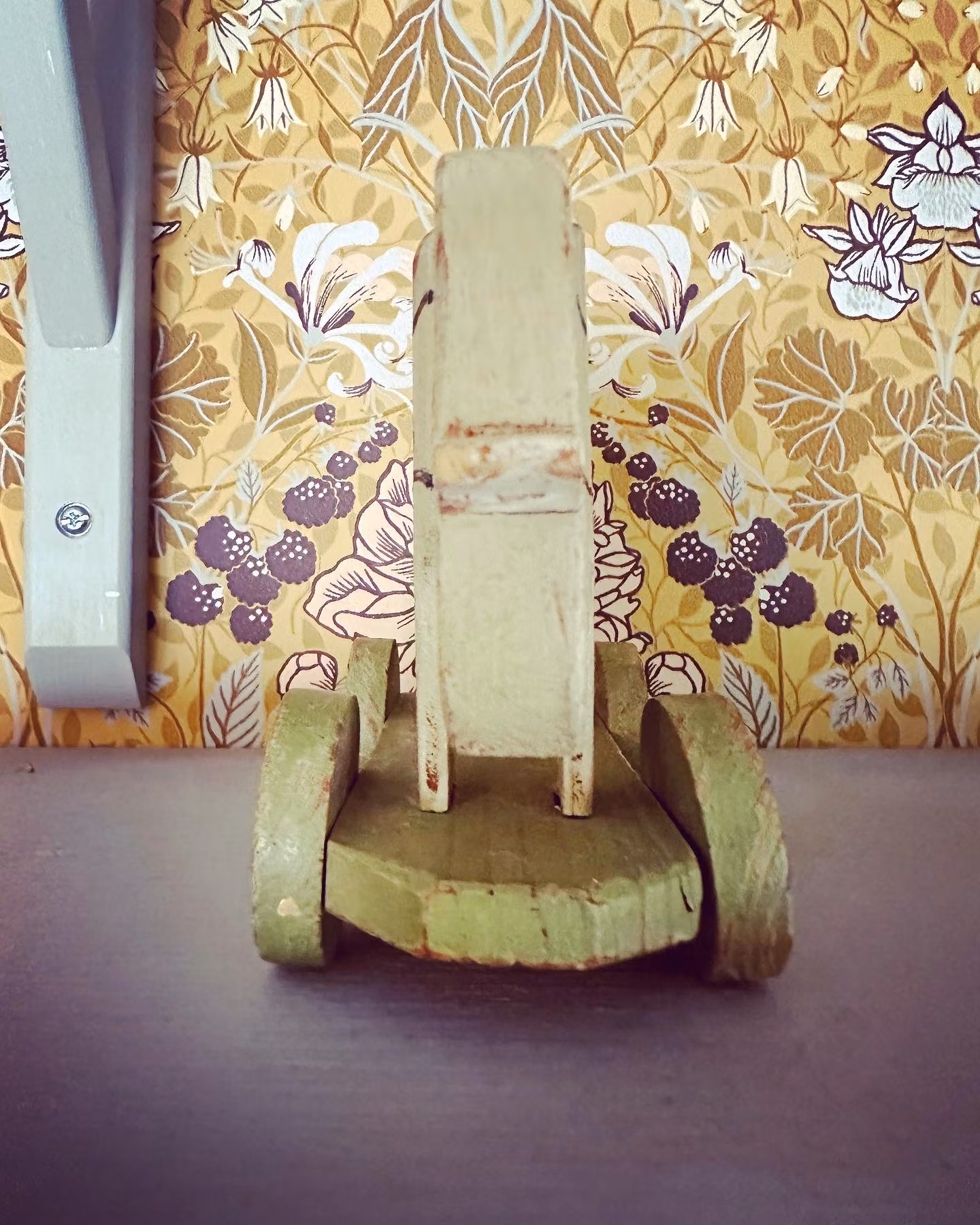 Varit älskad och väl använd så lite sliten och nött på charmigt sätt. Lite glappig i hjulen. Se bilder för skick.