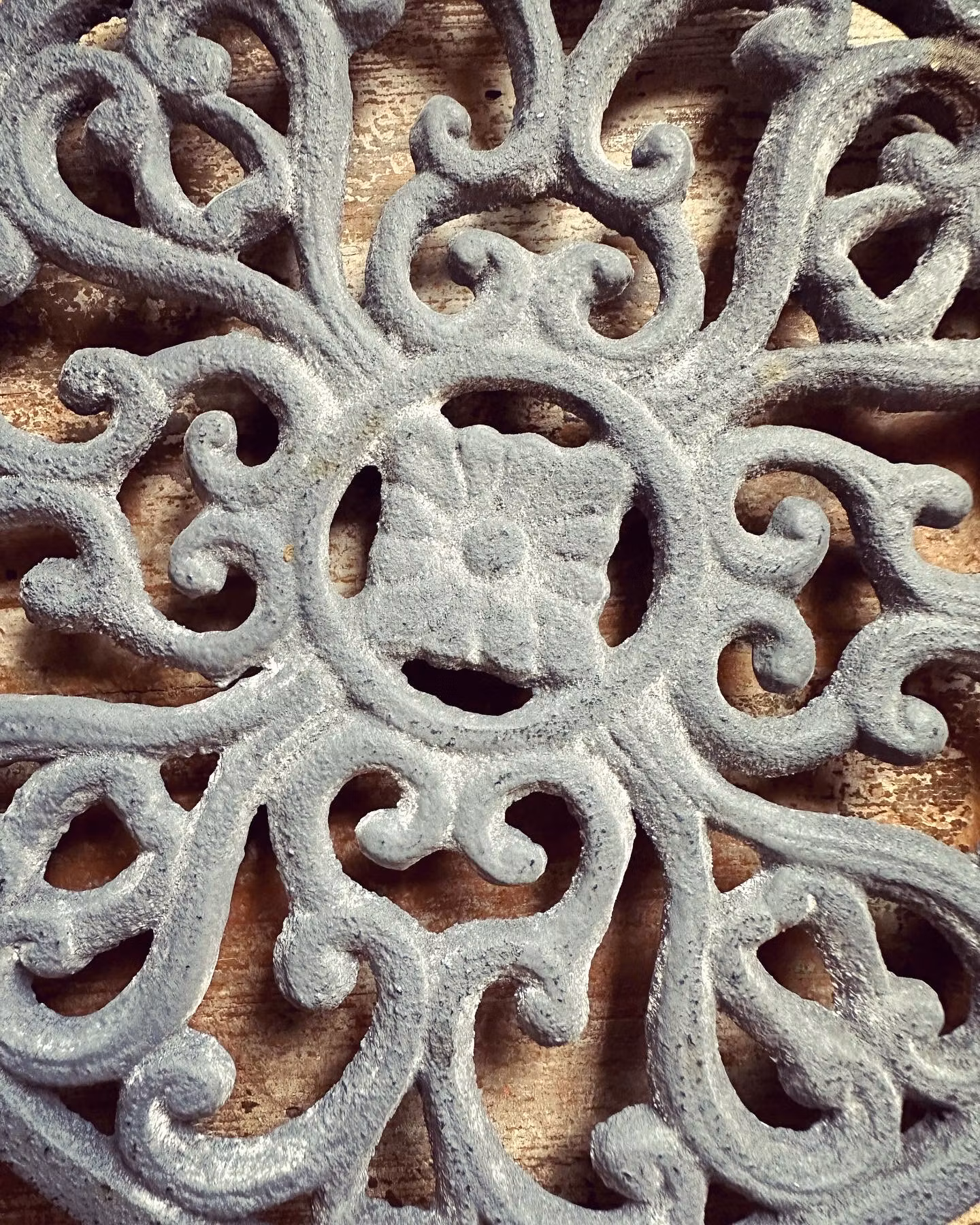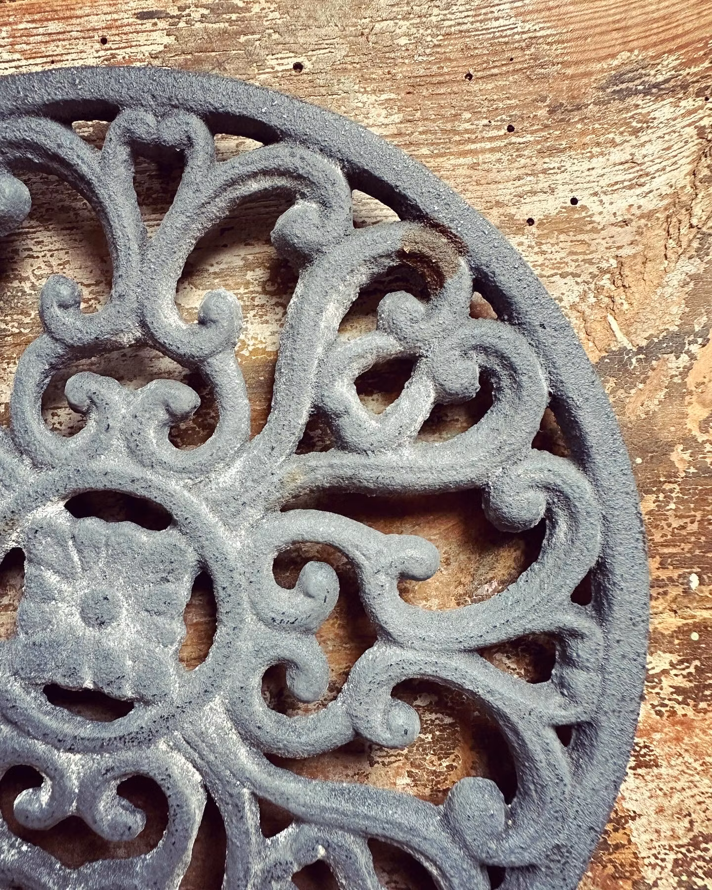 Fint underlägg i gjutjärn av nyare tillverkning men fint patinerat. Grå nyans.