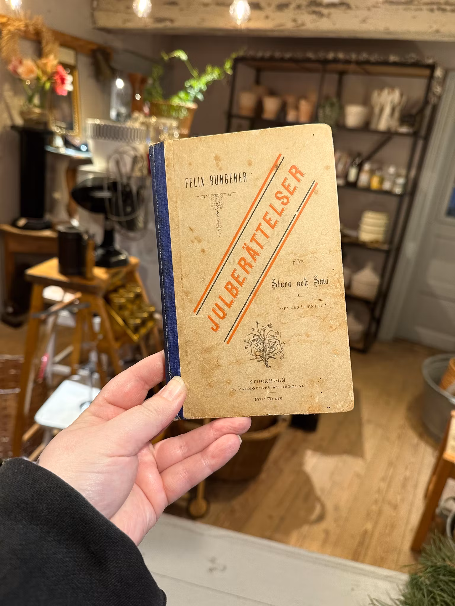 Vacker gammal julbok från 1876. I gott använt och åldrat skick. Spår av användning/ålder finns över hela. Se bilder för skick. Skrivit inuti. Mått ca 17,