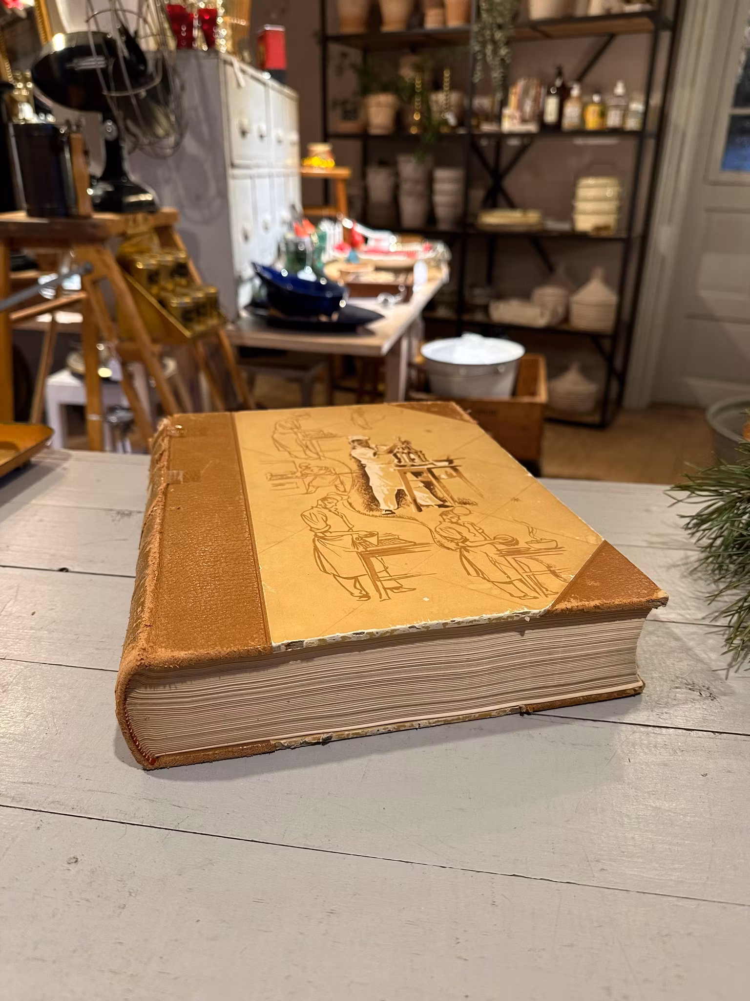I gott använt och åldrat skick. Spår av användning/ålder finns över hela. Se bilder för skick. Ryggen på boken är sliten, fattas en bit och lite tejpad.