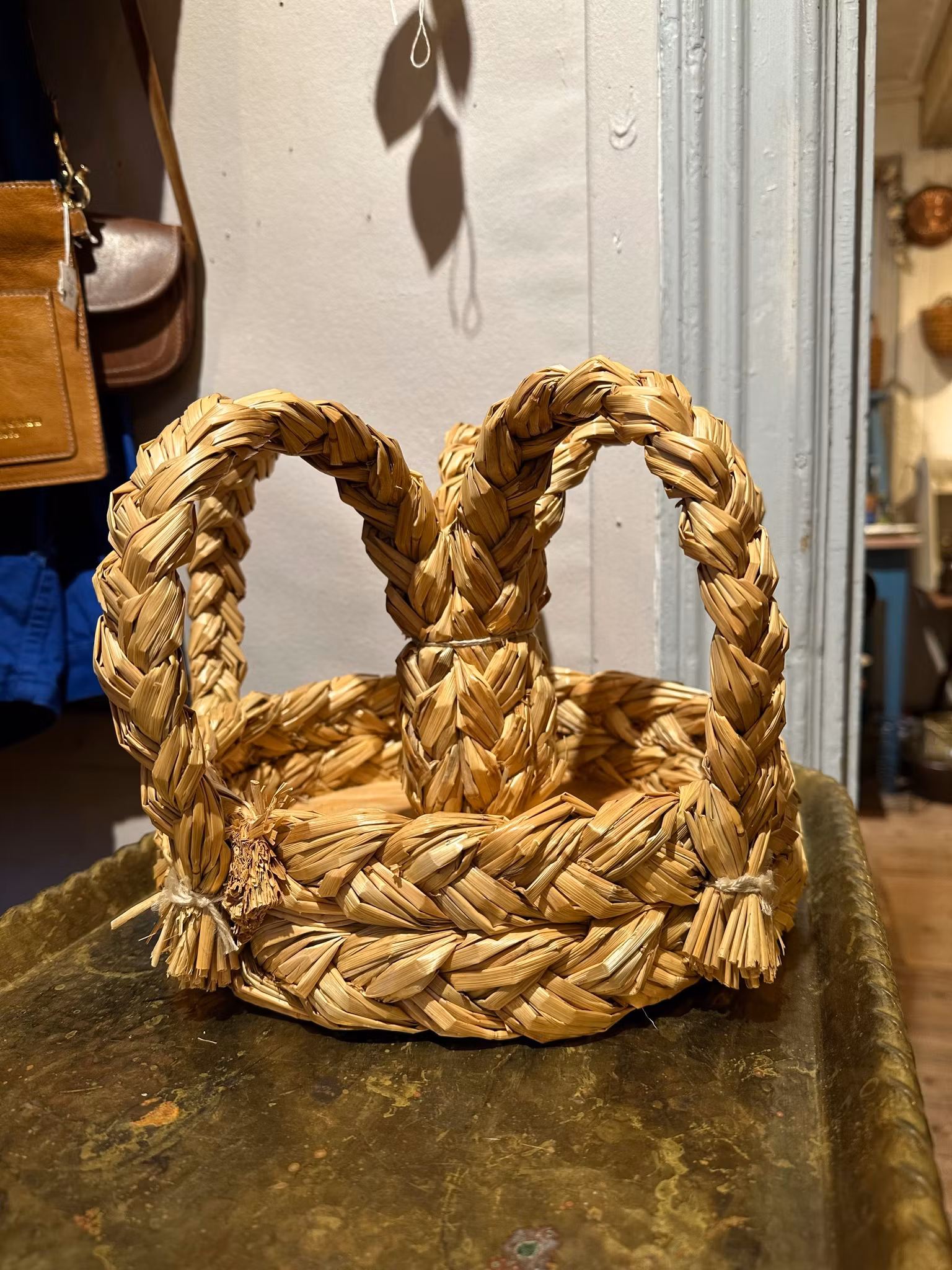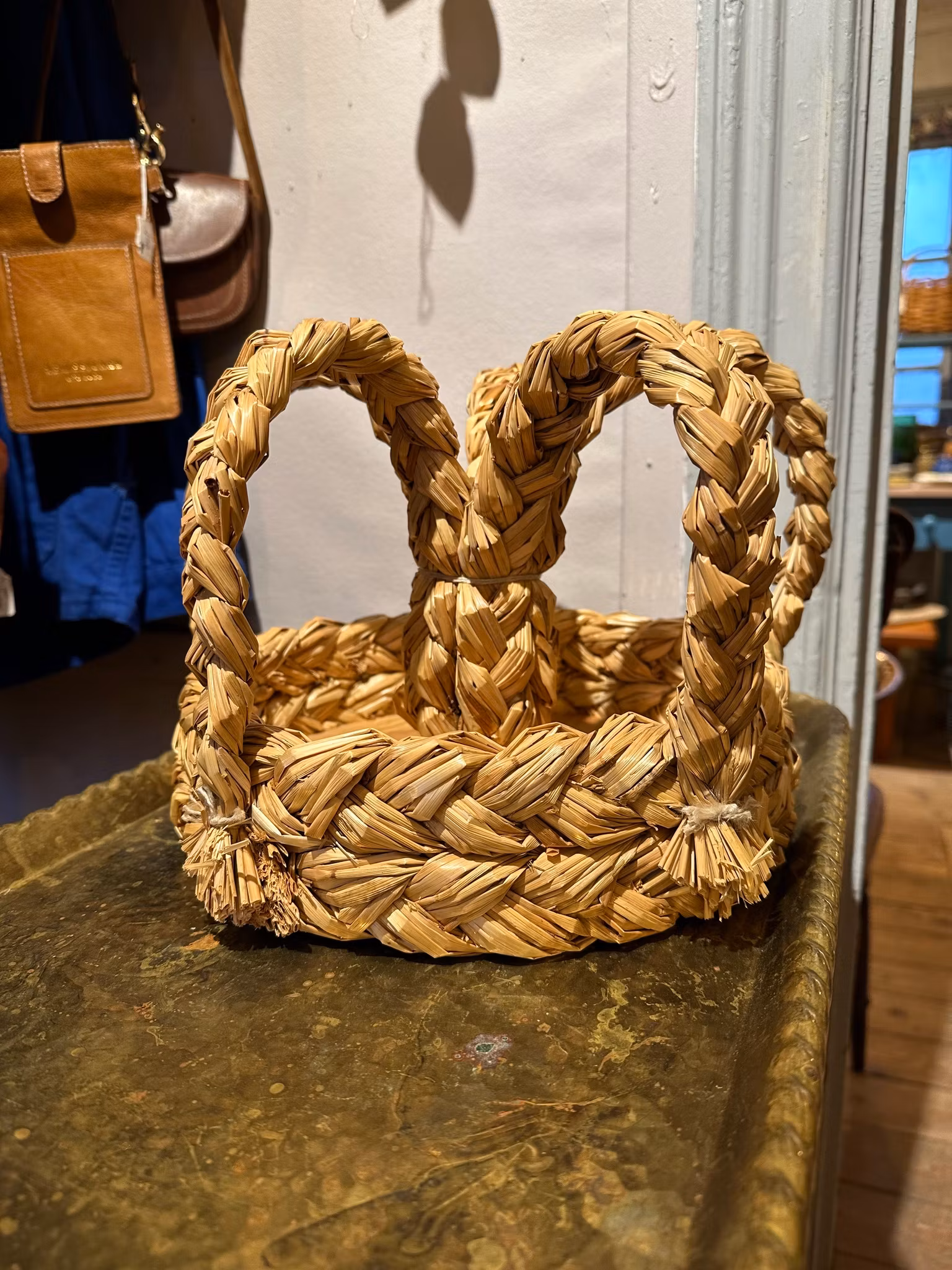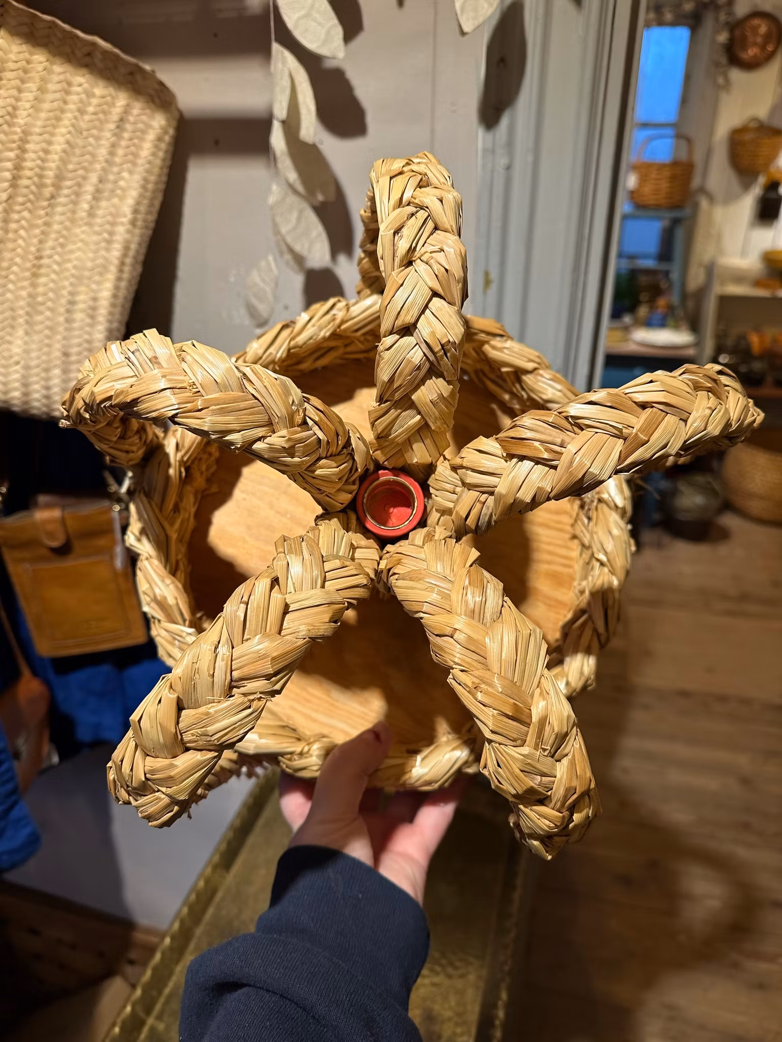 Fina krona gjord i halm och trä. Som en skål nedtill och plats för ett ljus upptill. Gjord i Glimåkra.