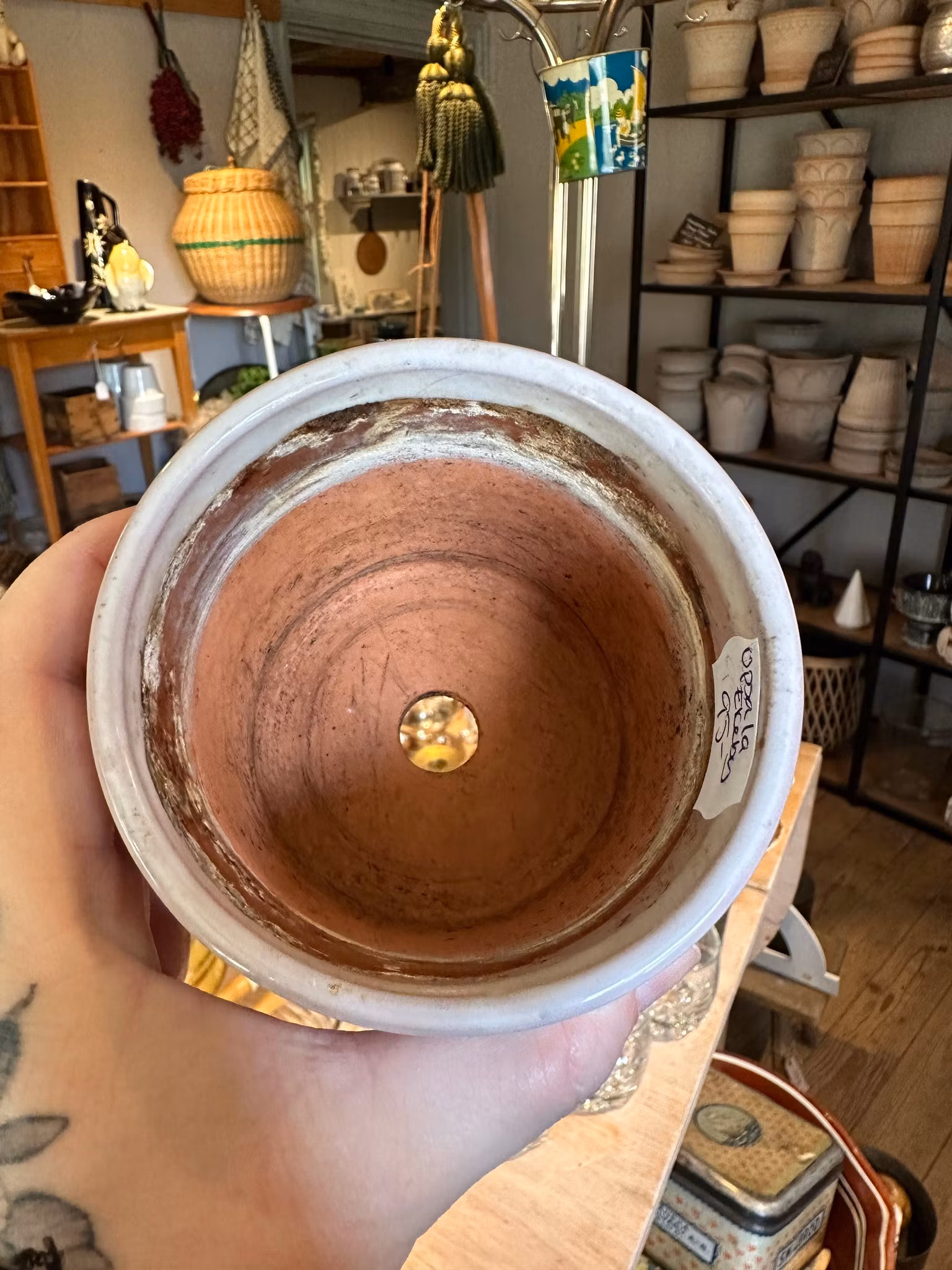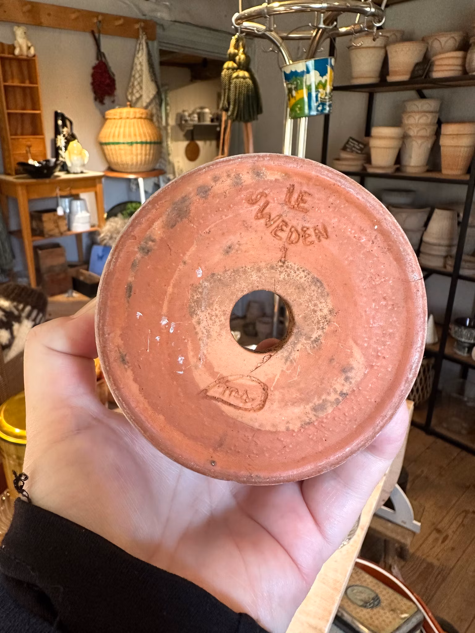 Söt liten kruka från svenska Uppsala Ekeby i beige toner. Obs inget fat till.