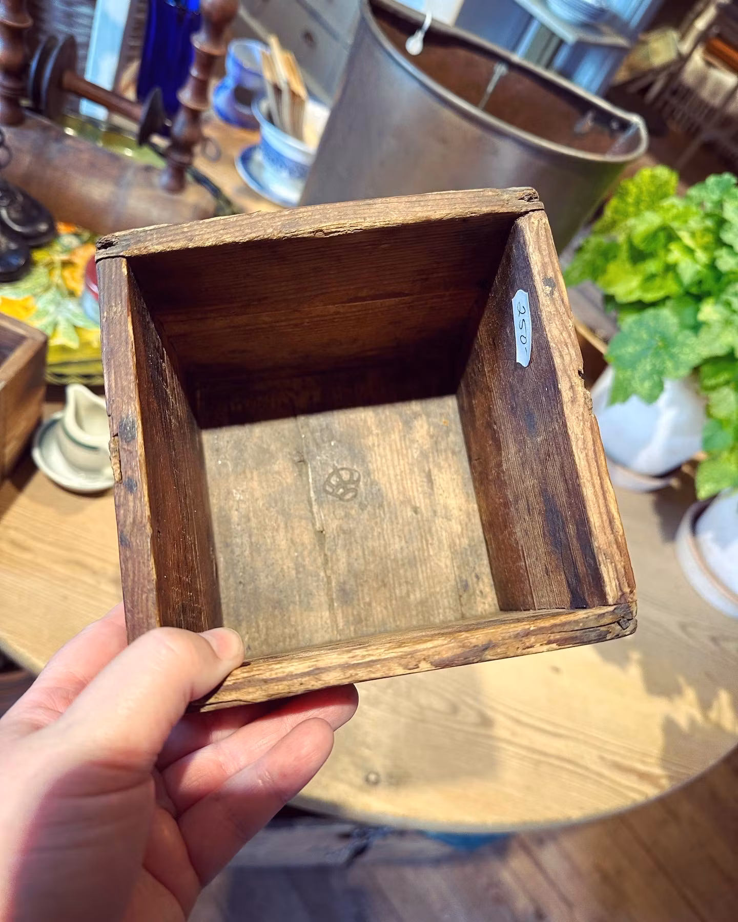 Fint gammalt mått i trä. Snyggt för förvaring eller liknande.