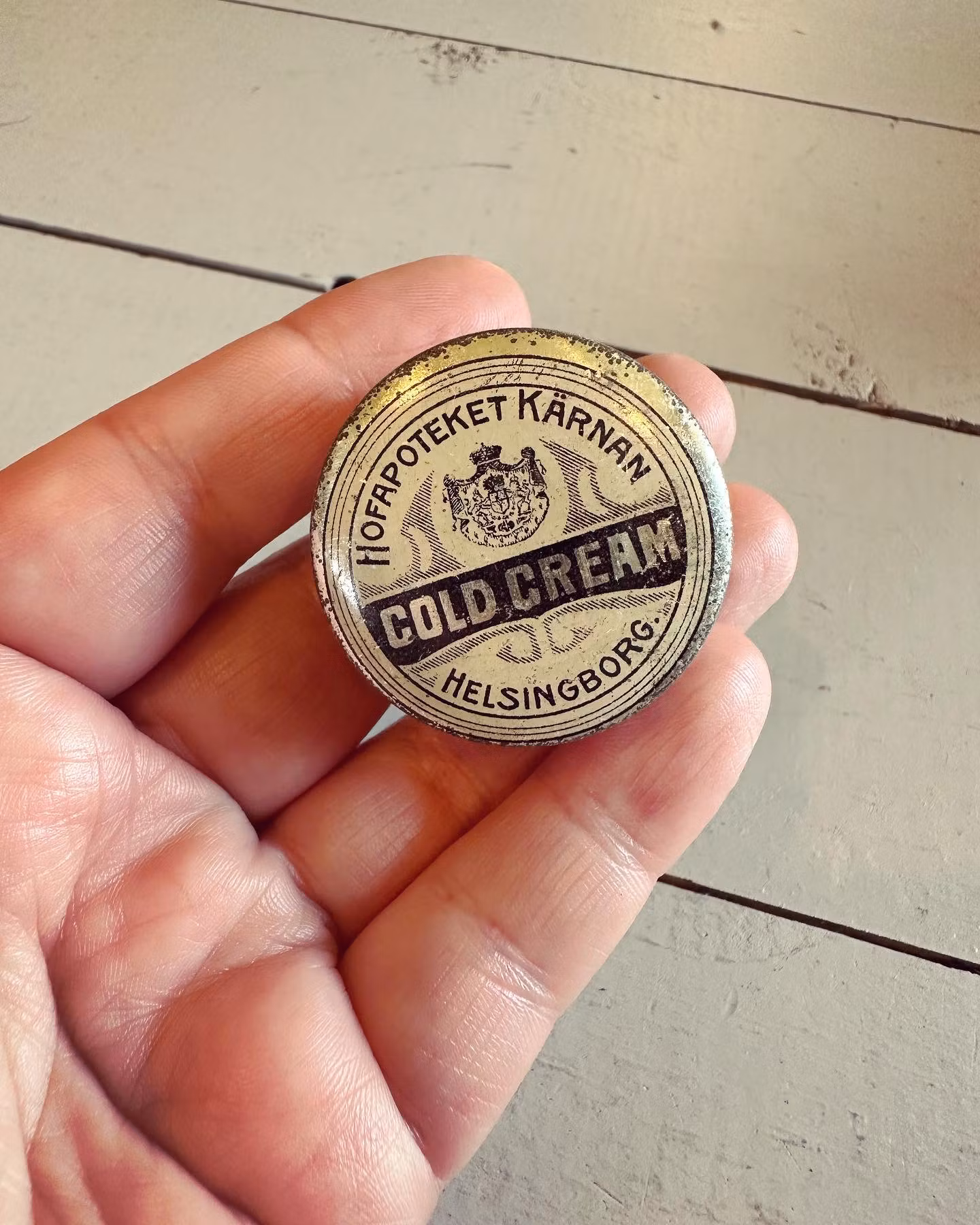 Mini-plåtask Hofapoteket Kärnan Cold cream 40 kr Söt liten mini-plåtask från Hofapoteket Kärnan Helsingborg med Cold Cream. I gott åldrat och använt skick. Tom. Mått ca 3,5*1,5cm. Produkten är tyvärr slut i lager. Dela Information om produkten Söt liten mini-plåtask från Hofapoteket Kärnan Helsingborg med Cold Cream. I gott åldrat och använt skick. Tom. Mått ca 3,5*1,5cm.