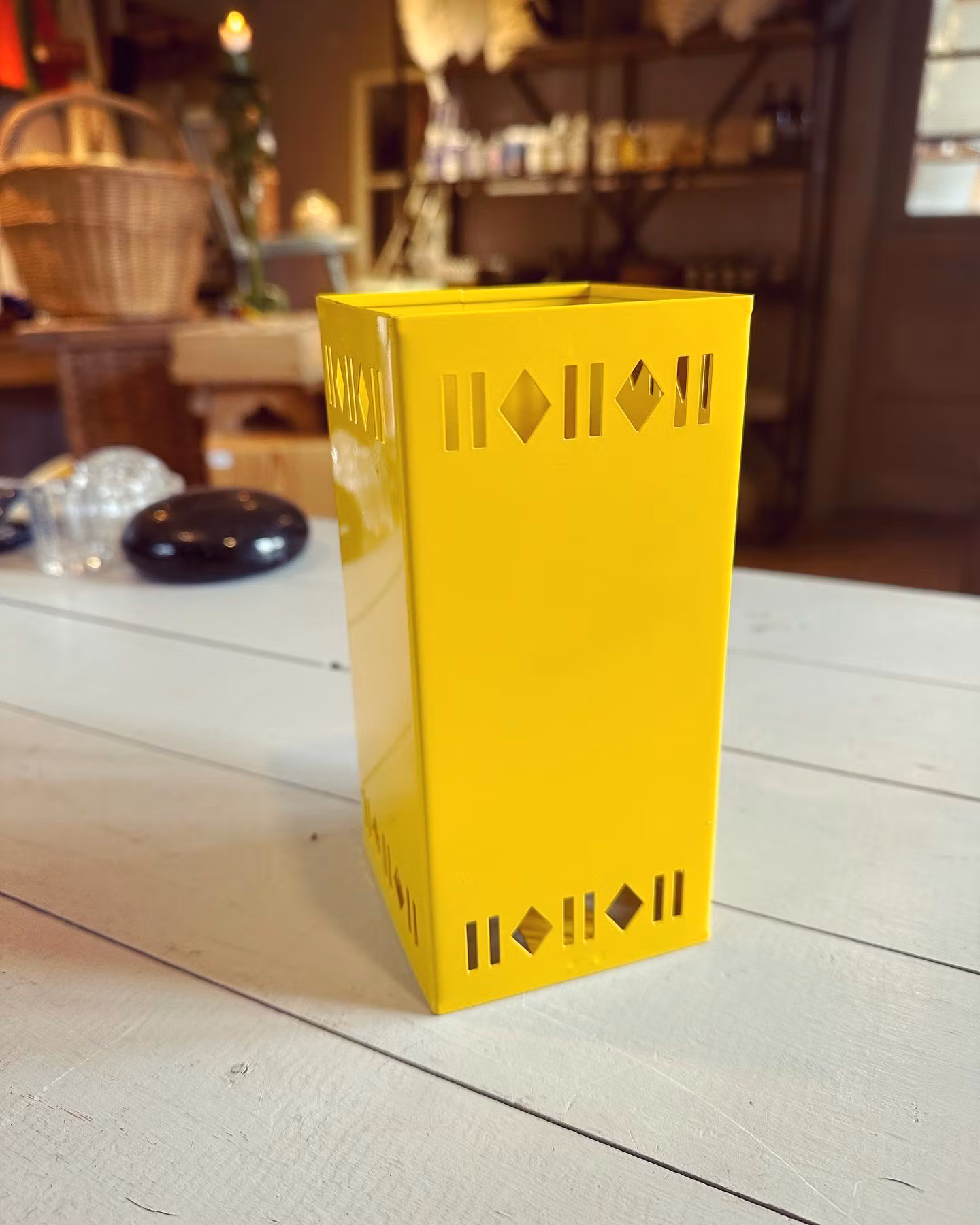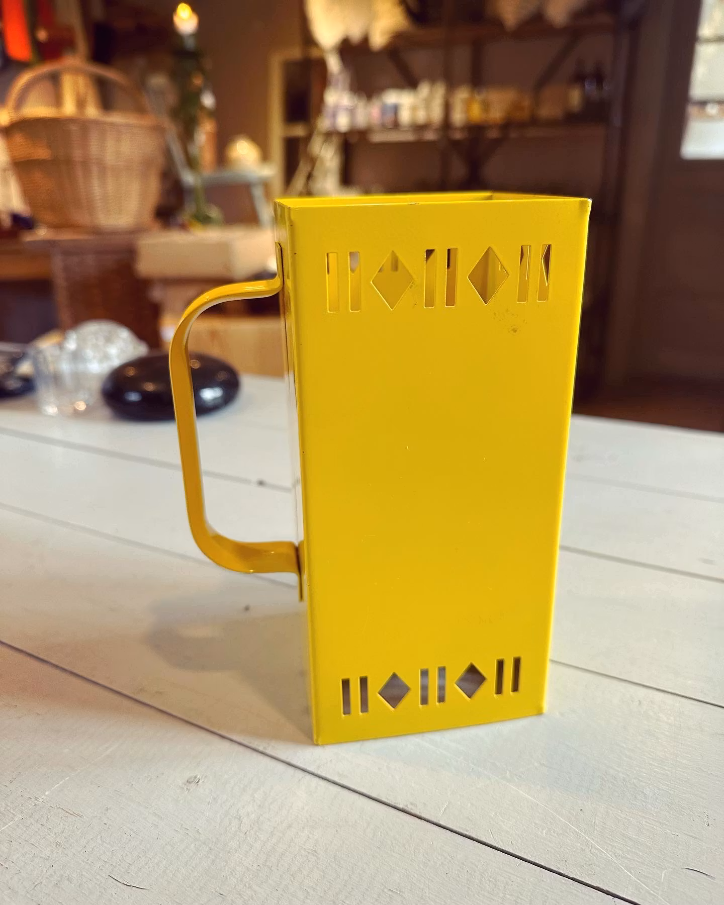 Retroklassiker från svenska Nils Johan - mjölkpaketshållare i gult.