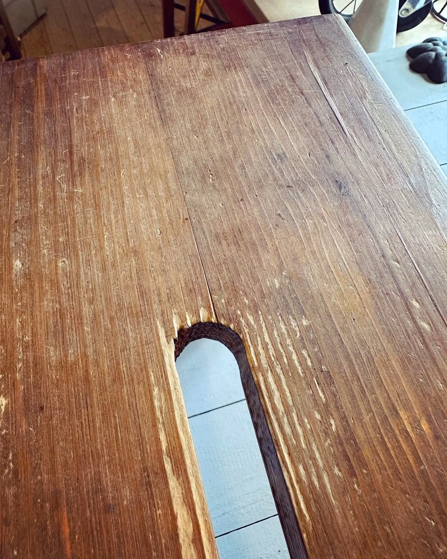 I gott använt skick med spår av ålder. Se bilder för skick. Liten liten spricka av ålder i träet i mitten, se bild. Står lite ojämnt.