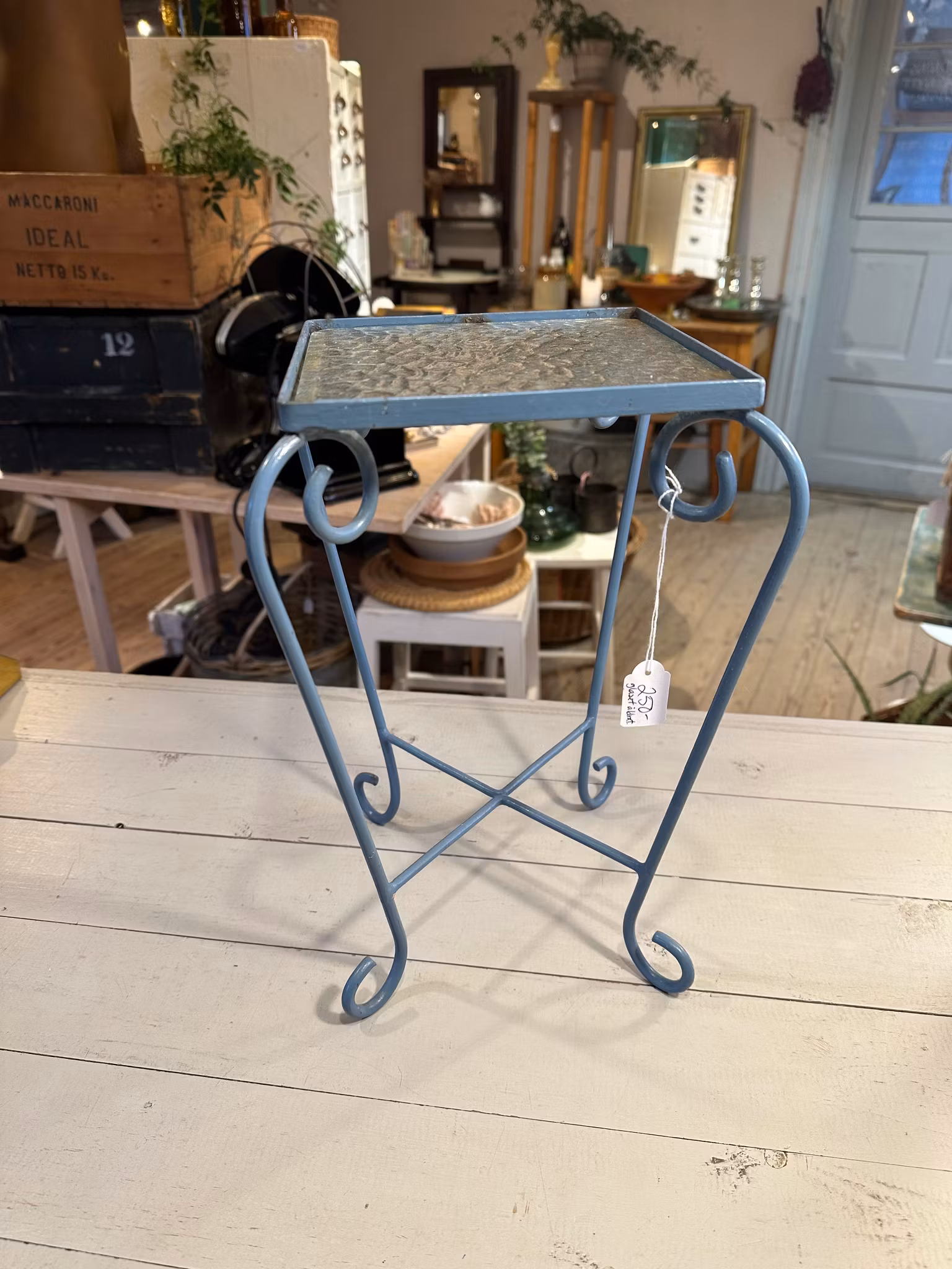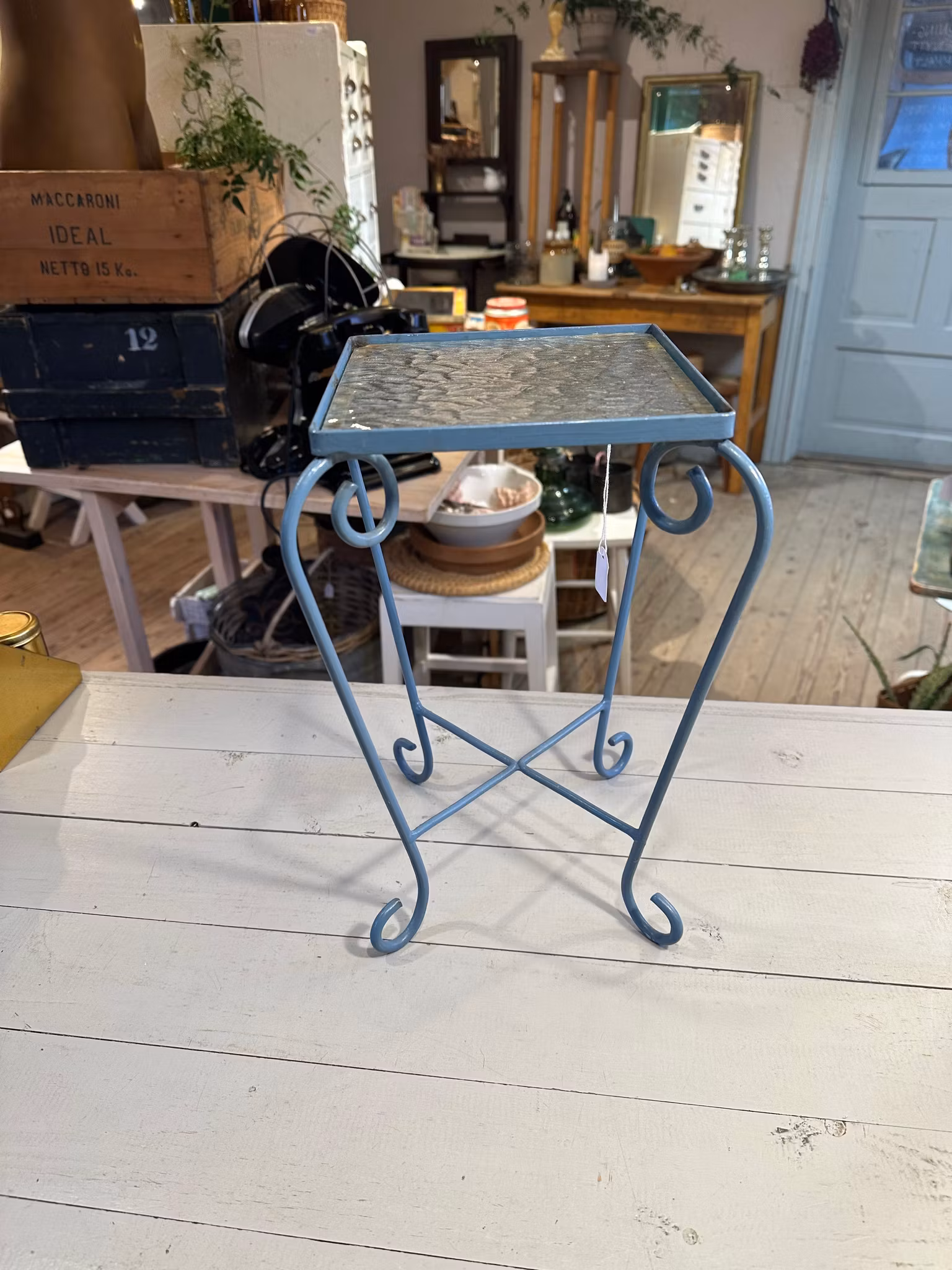 Vacker liten piedestal med stomme i metall och med löstagbar glasskiva.