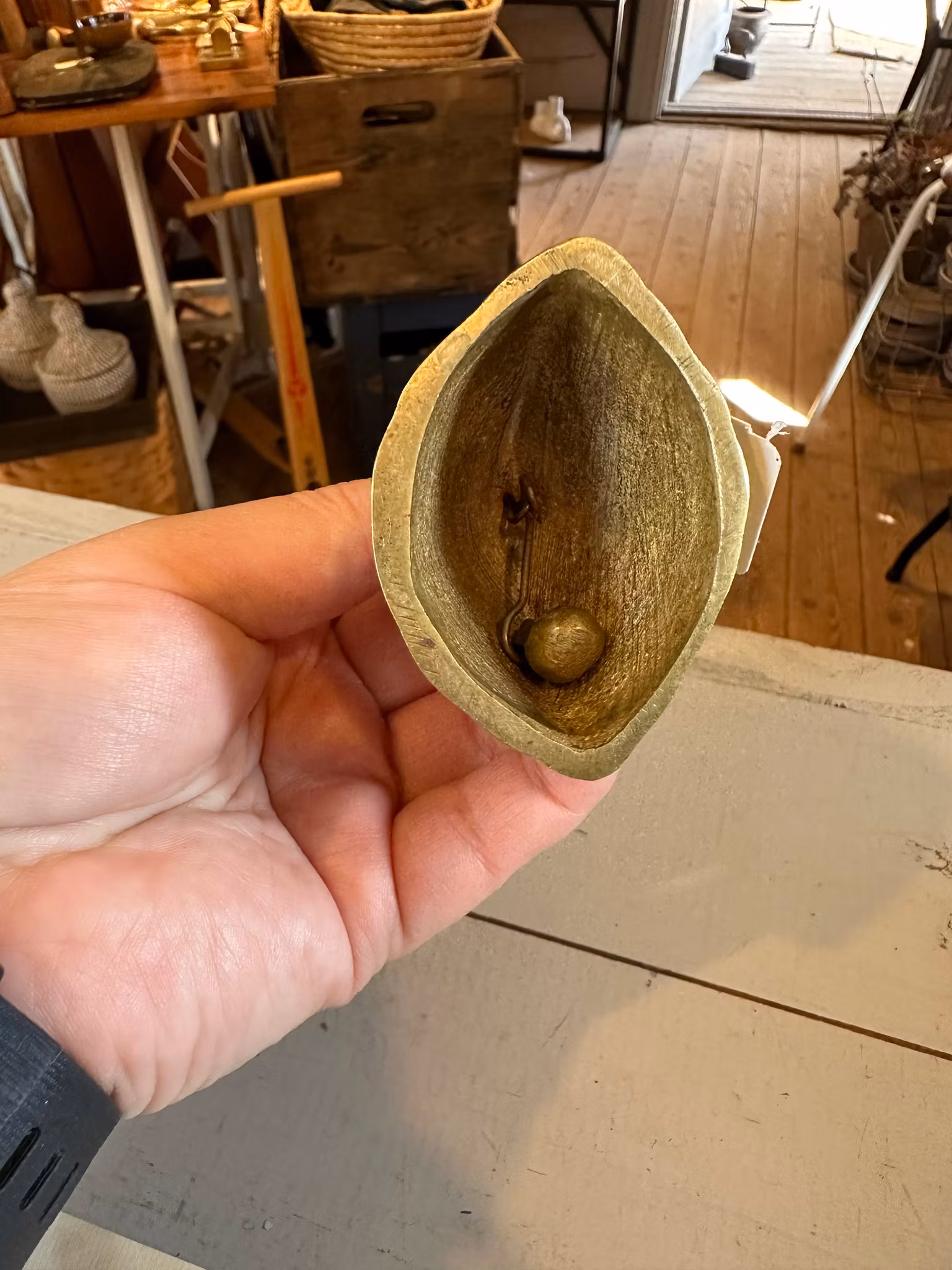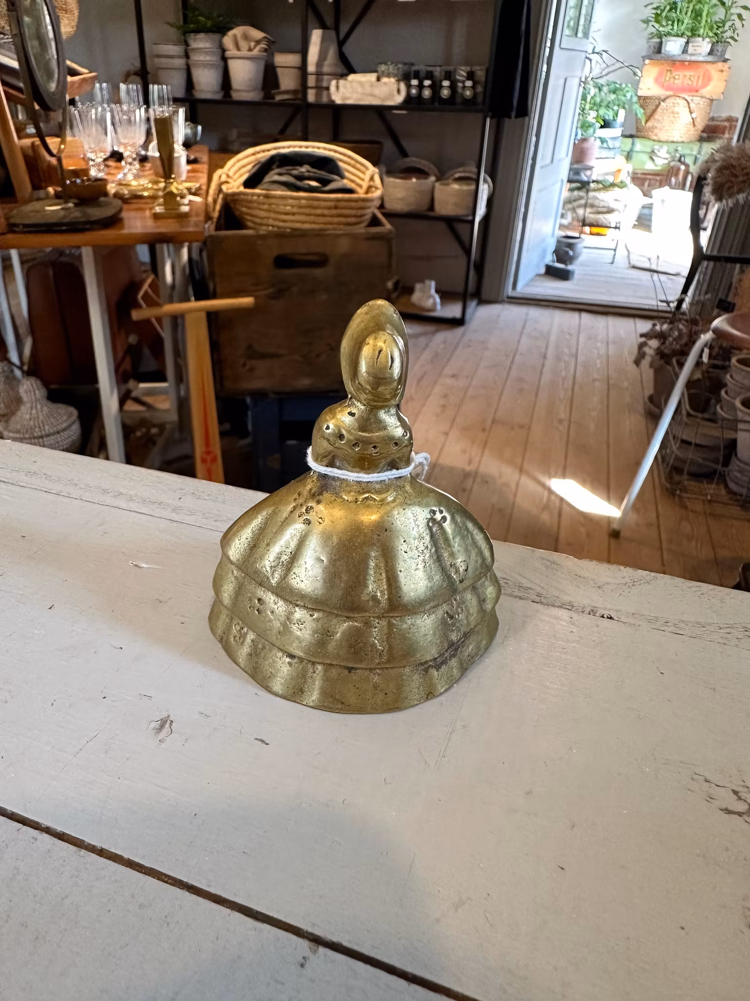 Söt liten pingla i vad jag tror är mässing i form av en dam. Fin dekoration! I gott använt och åldrat skick. Spår av användning finns. Se bilder för sk