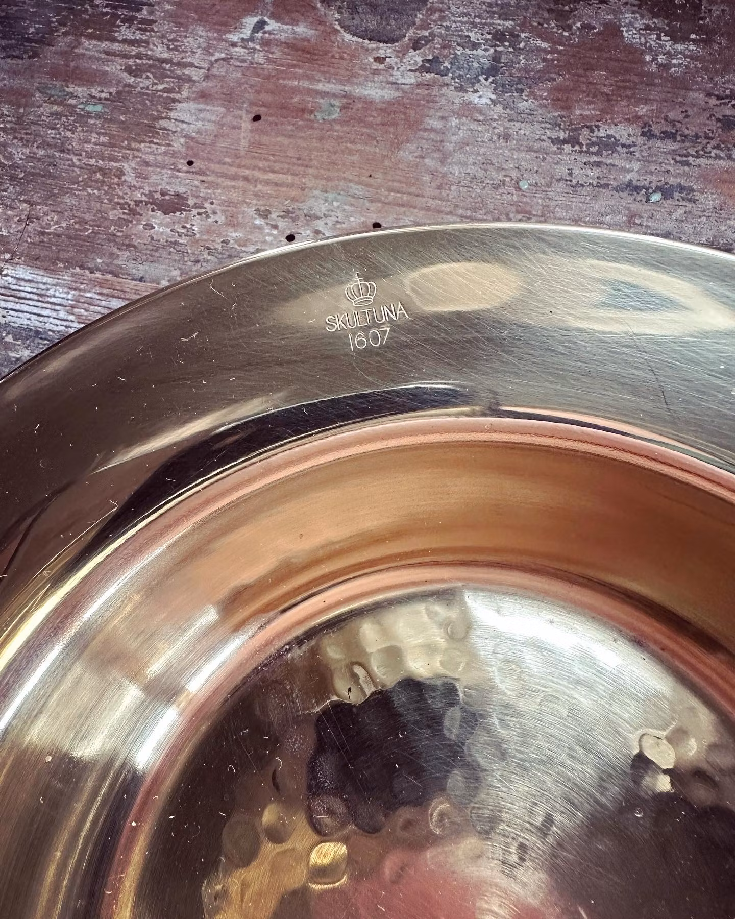 Fin skål i mässing från svenska Skultuna. I gott använt och åldrat skick. Spår av användning och ålder över hela. Se bilder för skick. Mått ca 18*3,5cm.