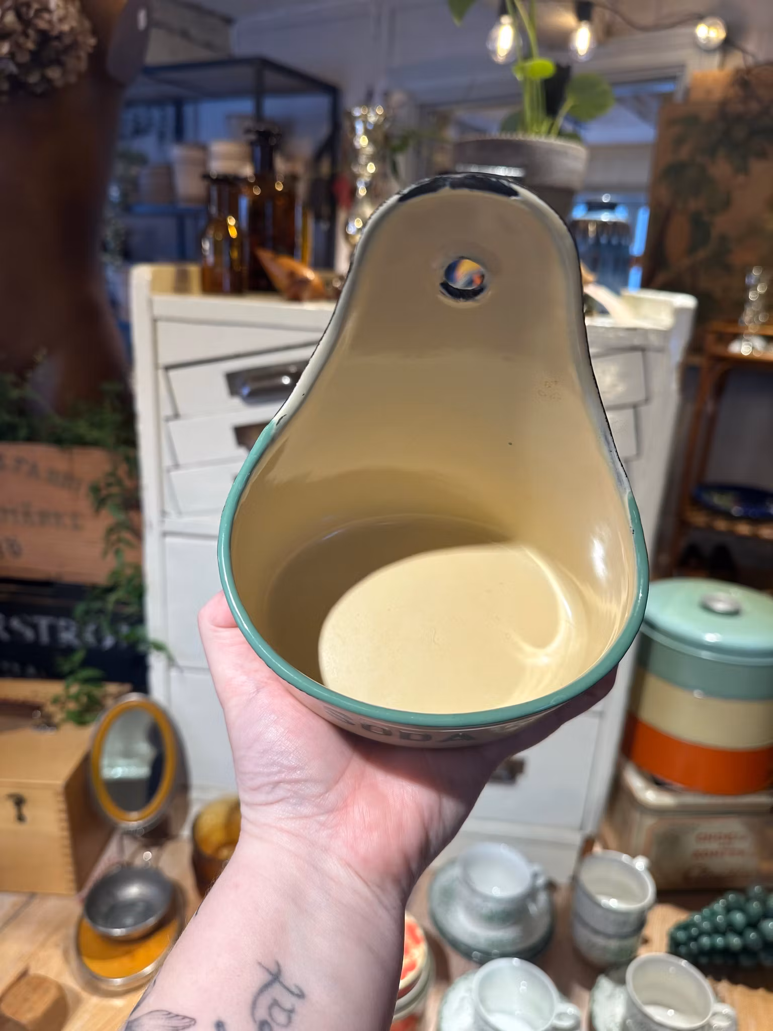 I gott använt och åldrat skick. Spår av användning och ålder finns över hela. Se bilder för skick. Lite skav i emaljen finns här och där, se bilder.