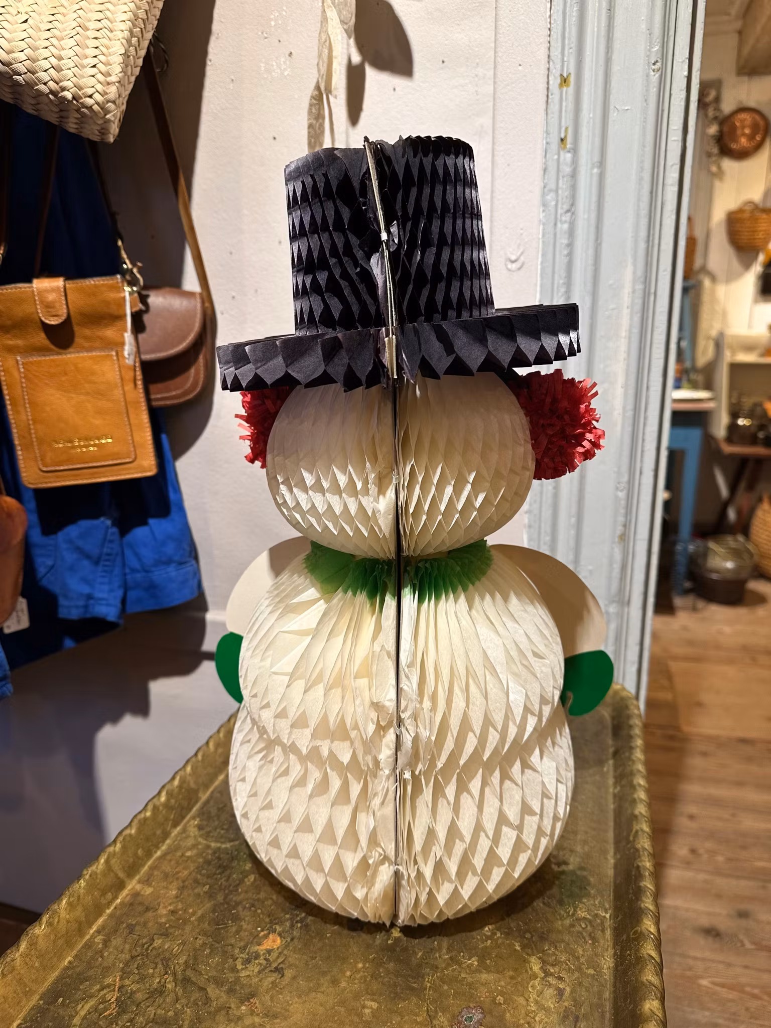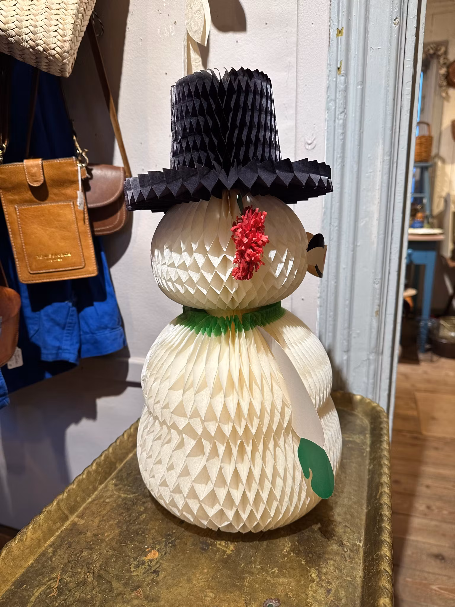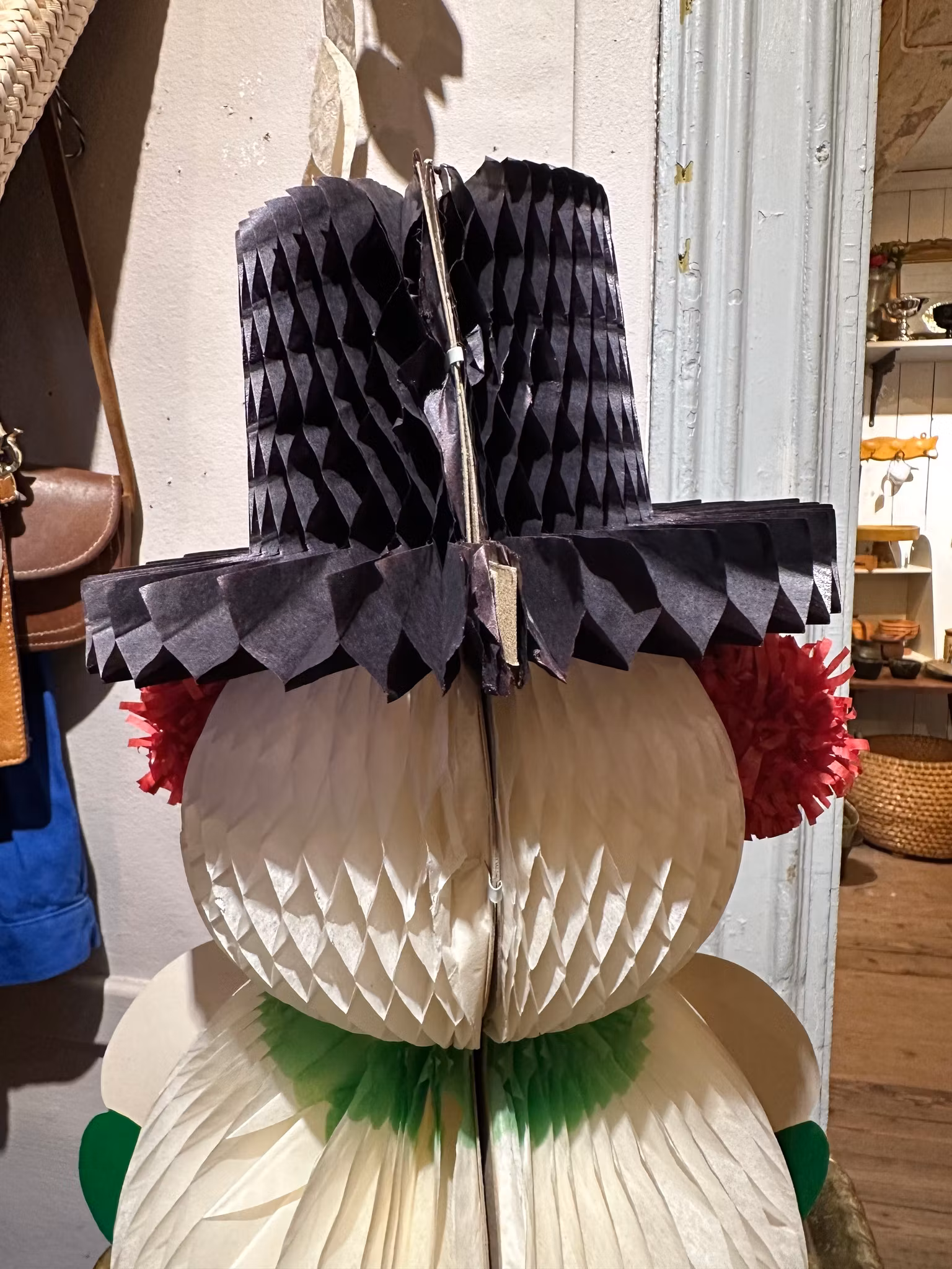 Ljuvlig snögubbe i papper som man vecklar upp och fäster ihop baktill. Gjord i Danmark, märkning ser man när den är ihopfälld.