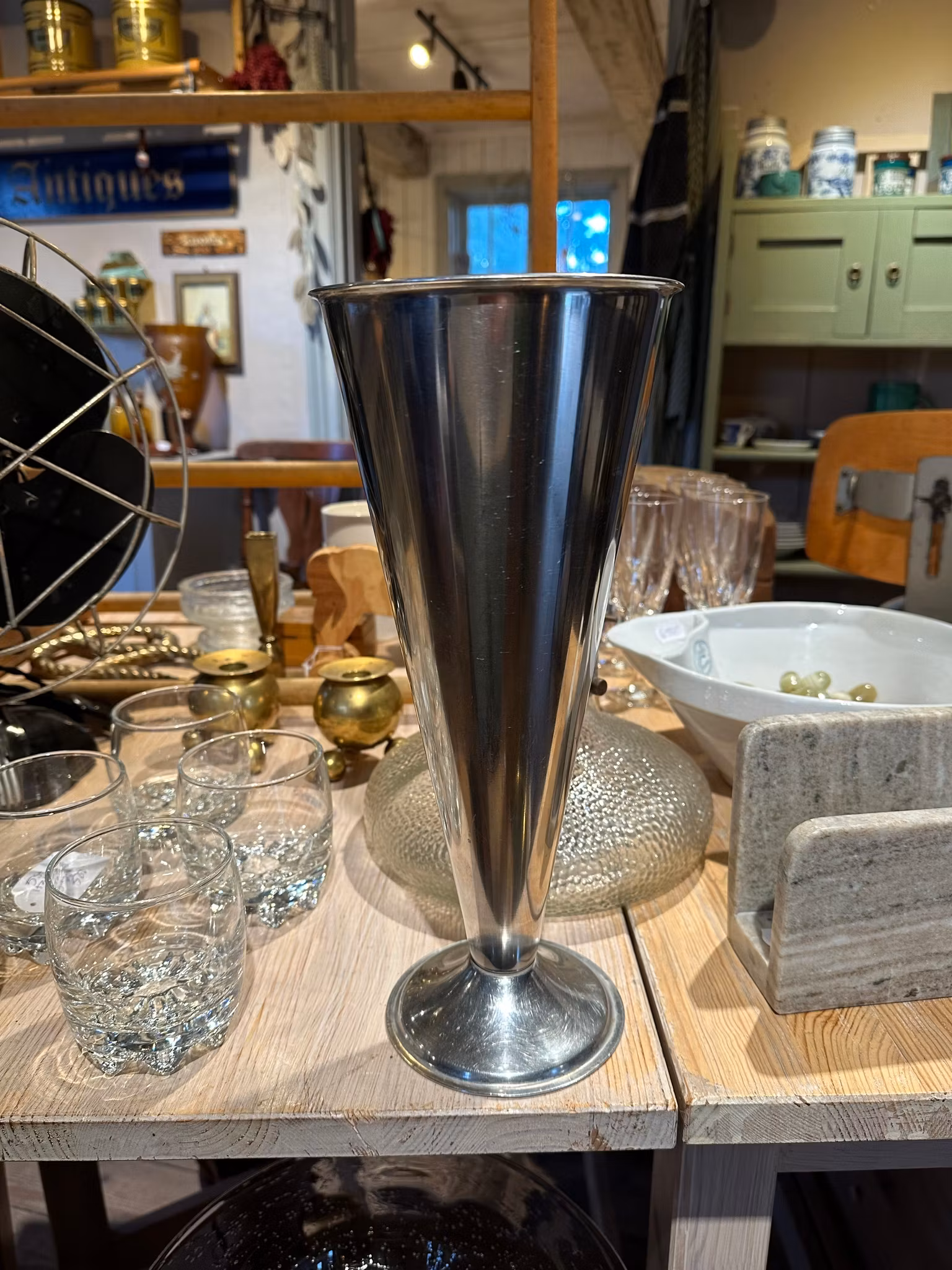 Vas rostfri stora 250 kr Stor pampig rostfri vas. I gott åldrat och använt skick. Spår av användning finns. Se bilder för skick. Spår av användning inuti. Höjd ca 32cm. Produkten är tyvärr slut i lager. Dela Information om produkten Stor pampig rostfri vas.I gott åldrat och använt skick. Spår av användning finns. Se bilder för skick. Spår av användning inuti.Höjd ca 32cm.
